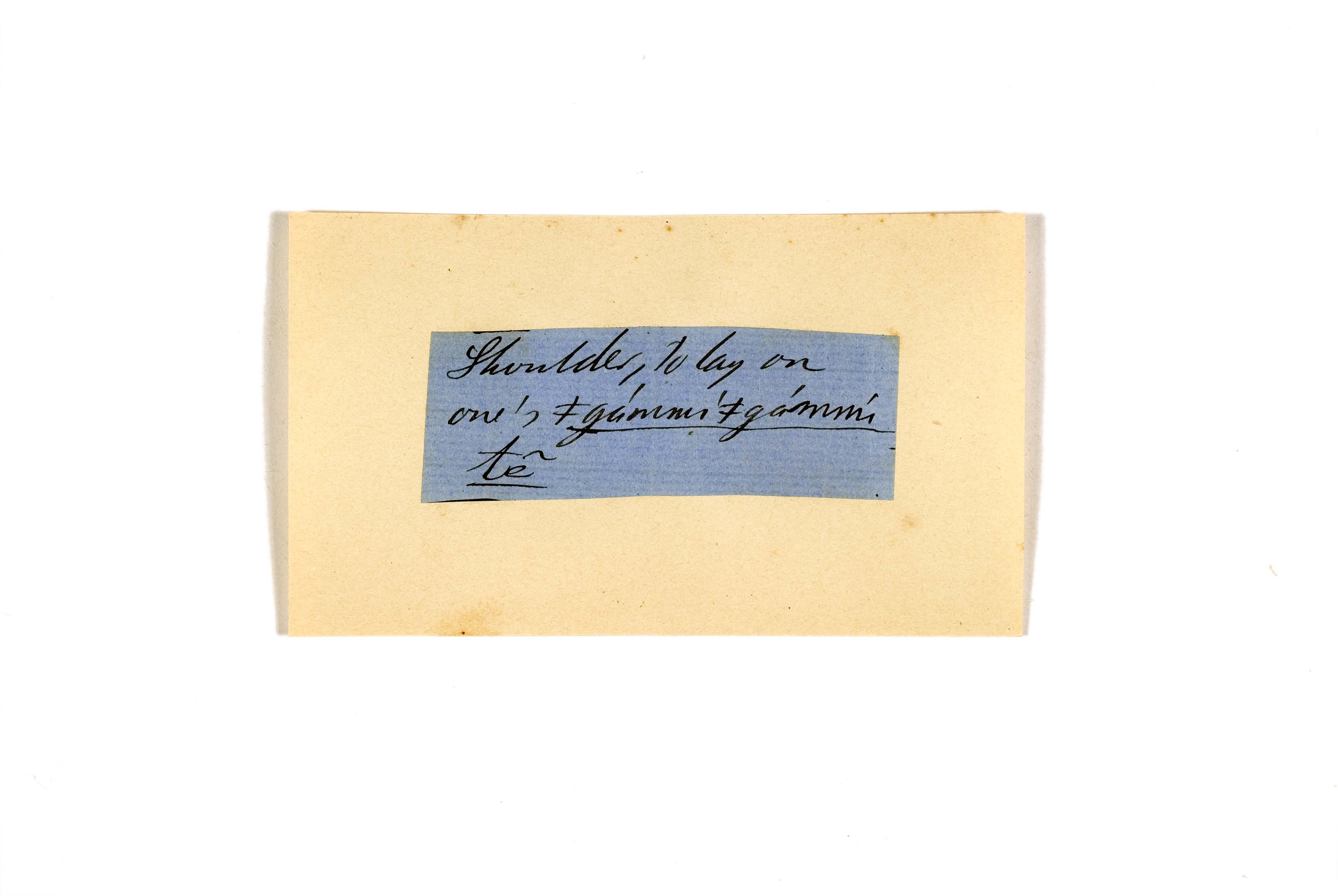 ink on blue paper glued on card