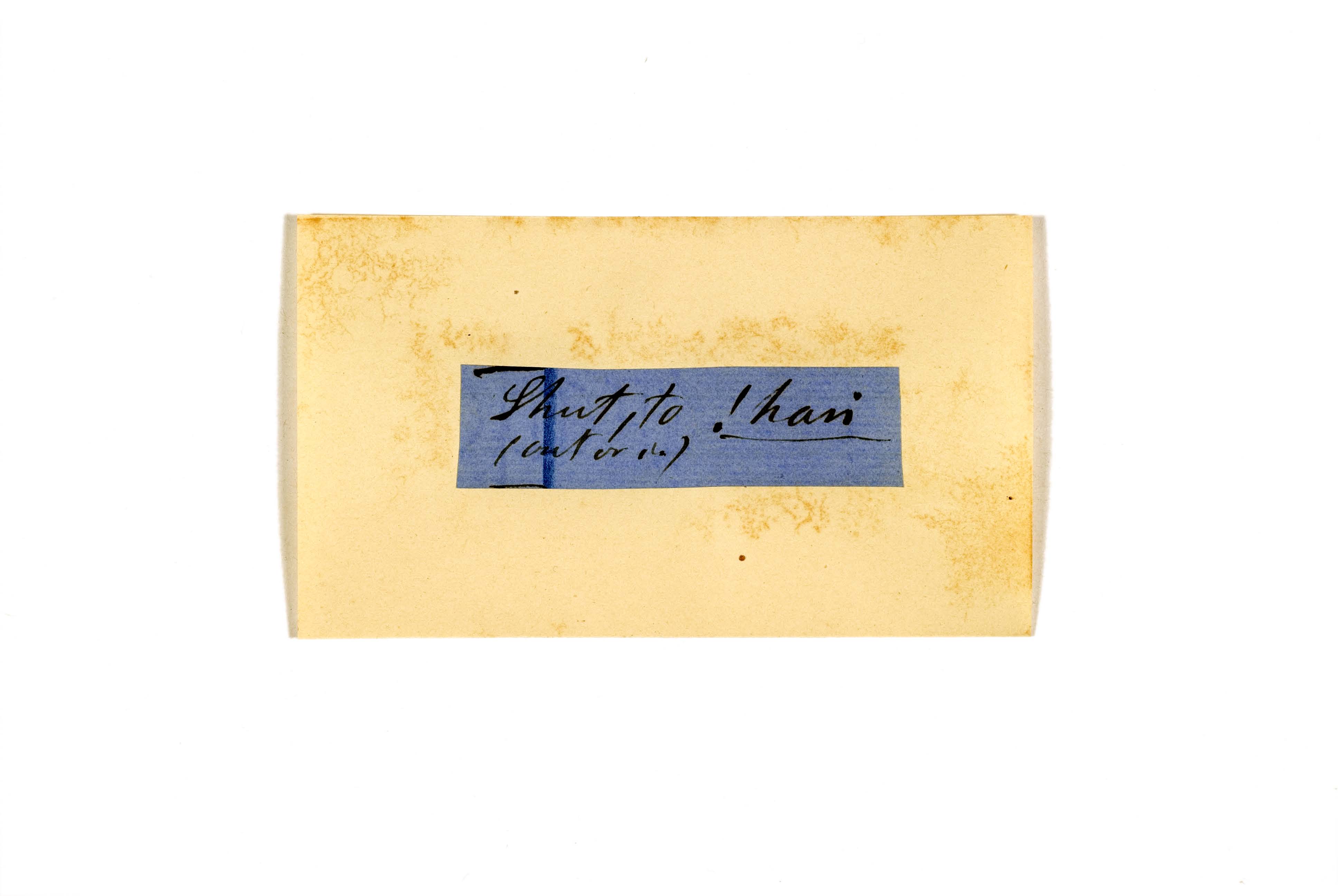 ink on blue paper glued on card