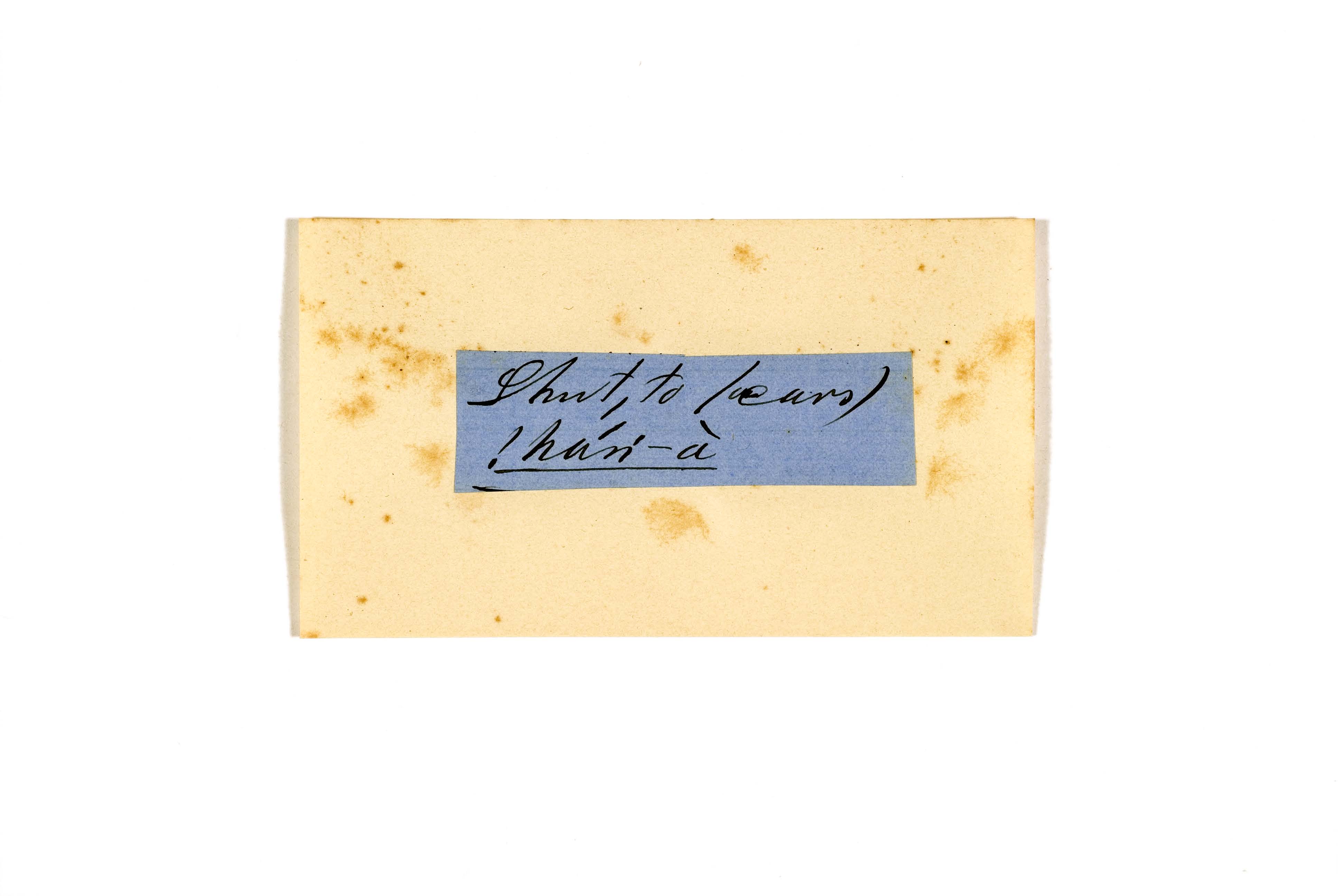 ink on blue paper glued on card