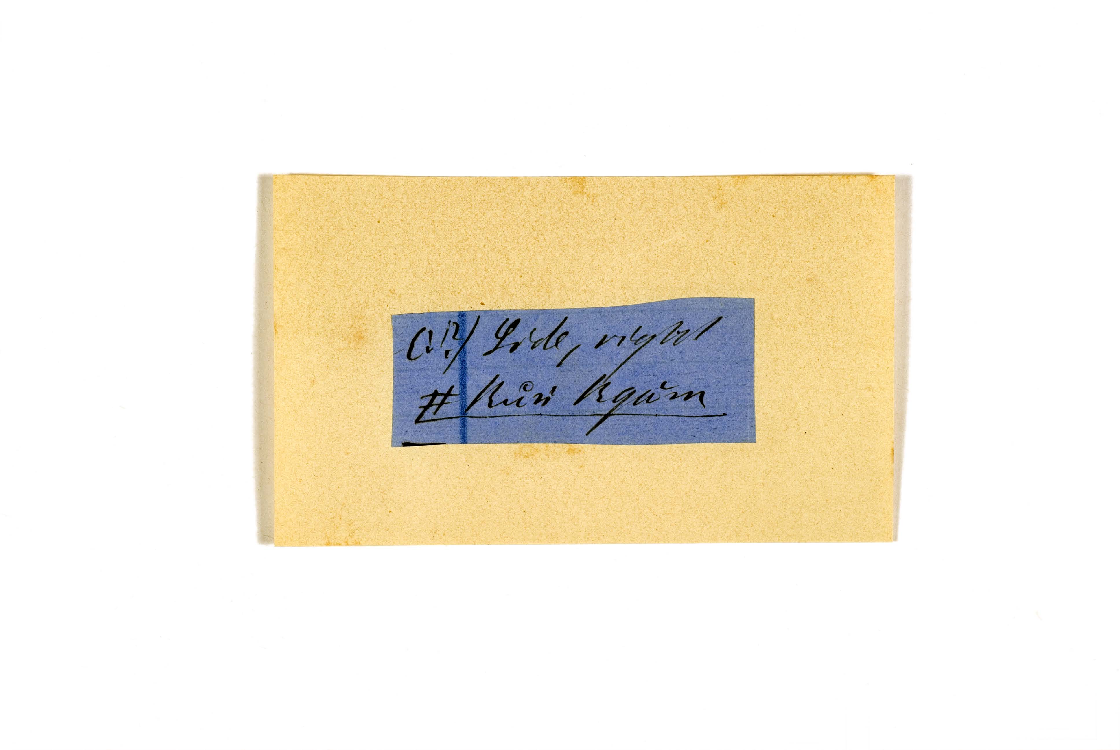 ink on blue paper glued on card