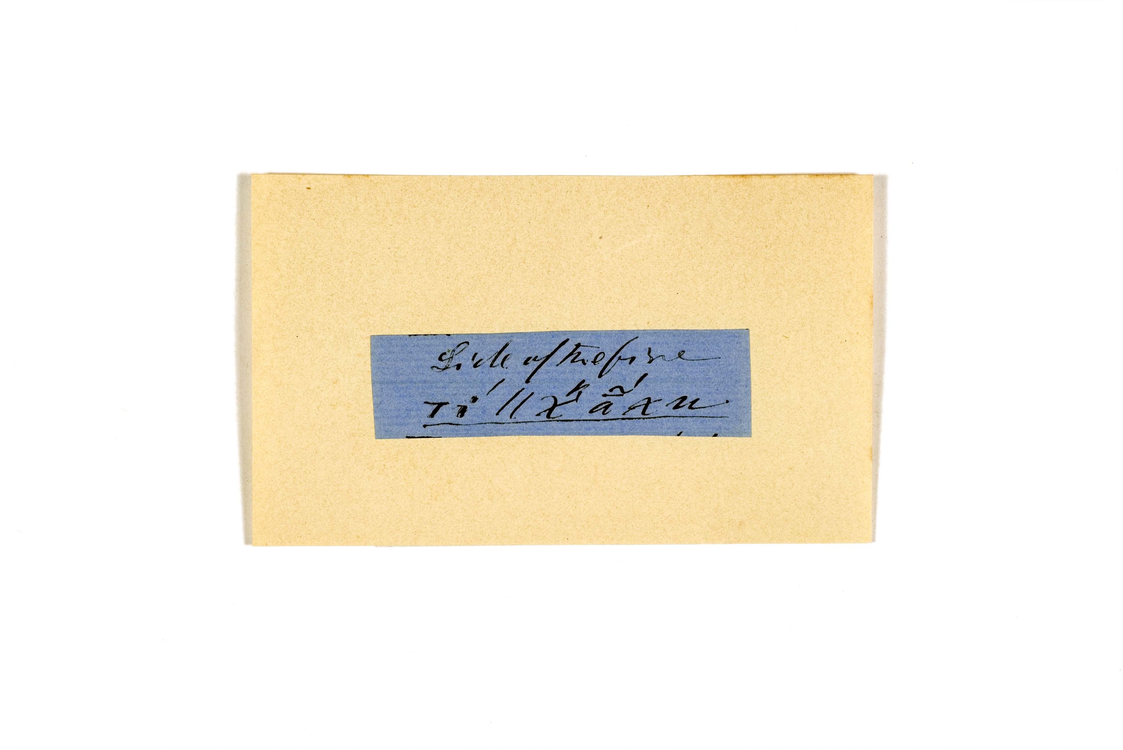 ink on blue paper glued on card