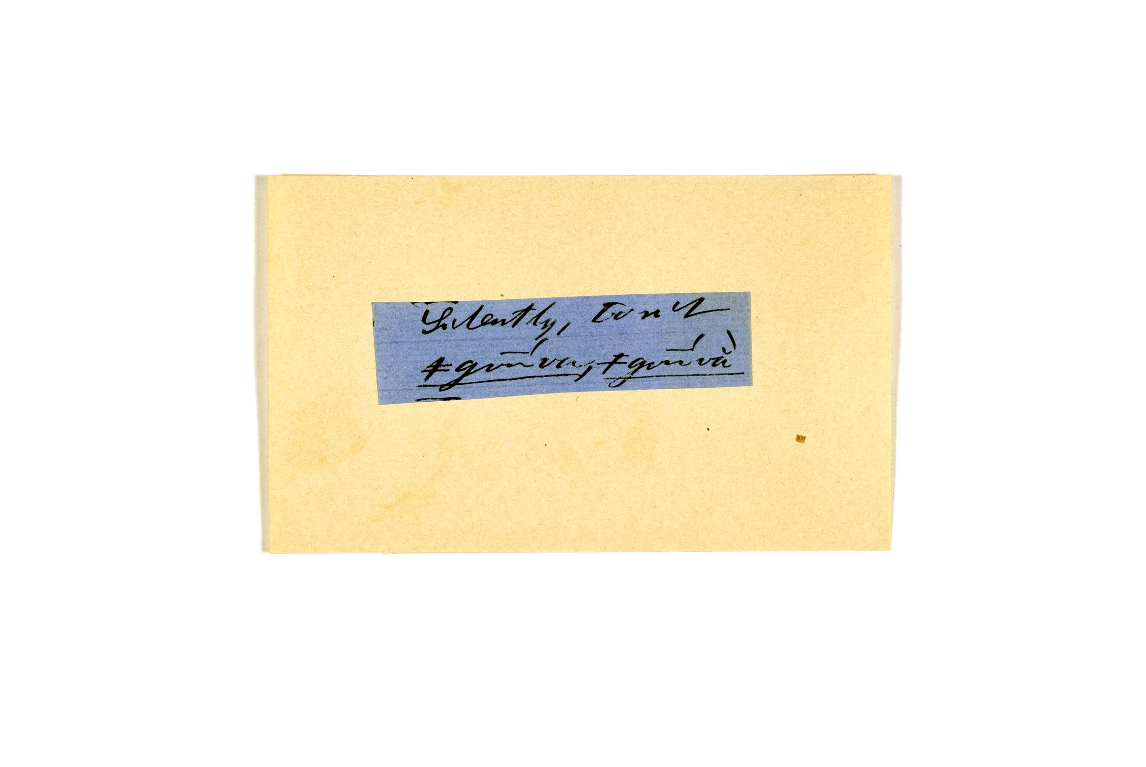 ink on blue paper glued on card
