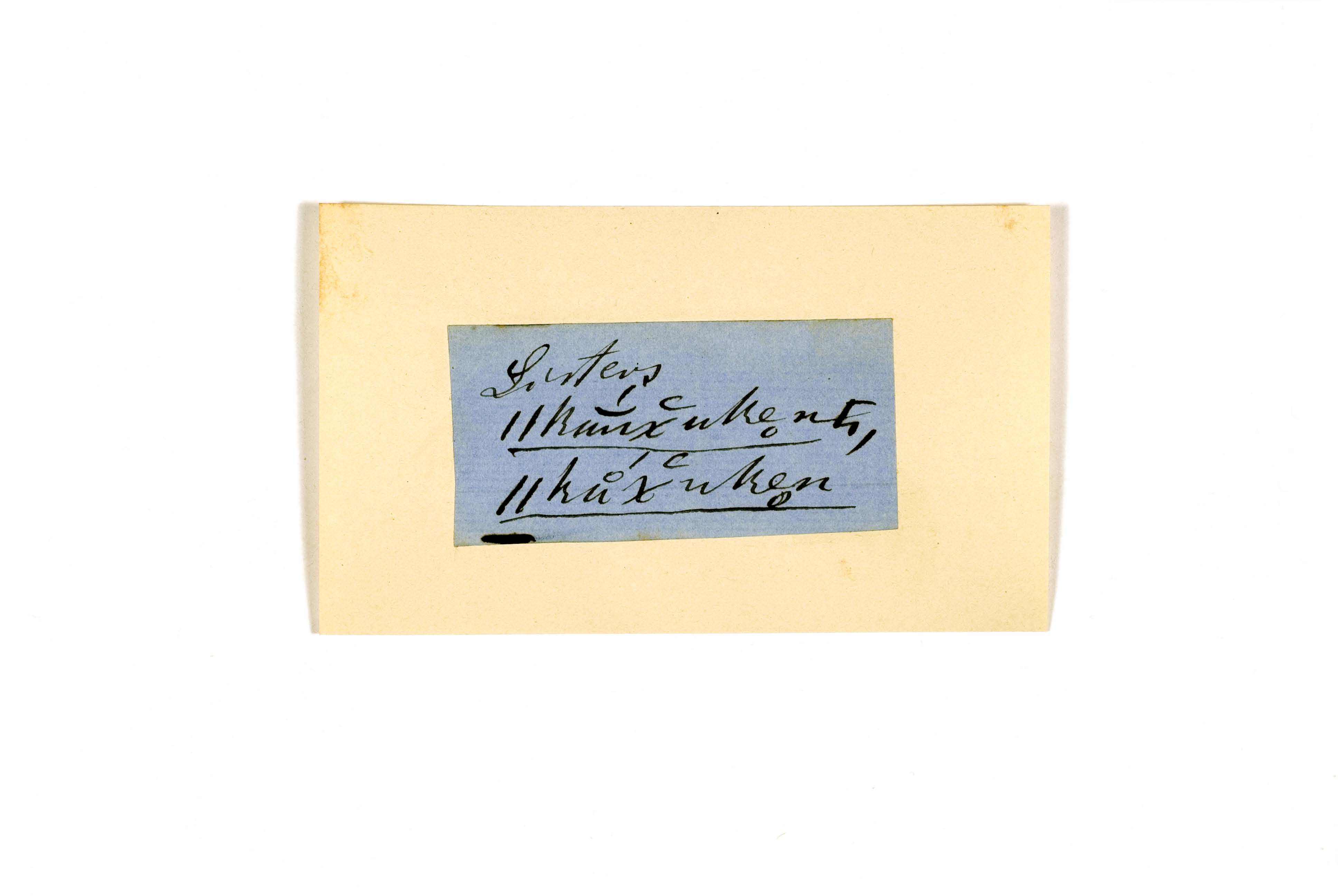 ink on blue paper glued on card