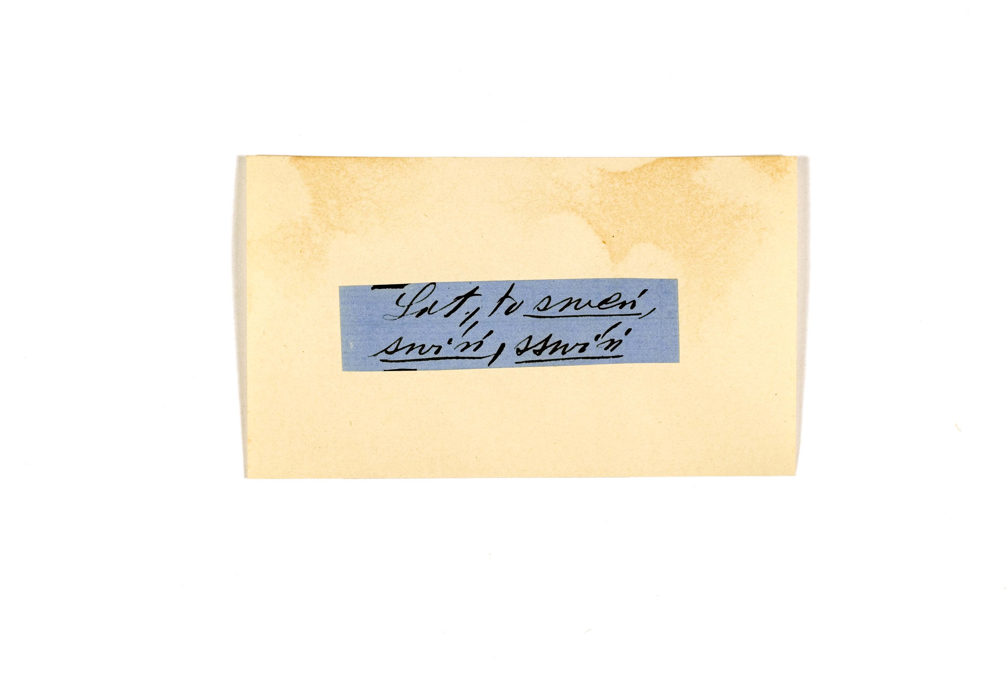 ink on blue paper glued on card