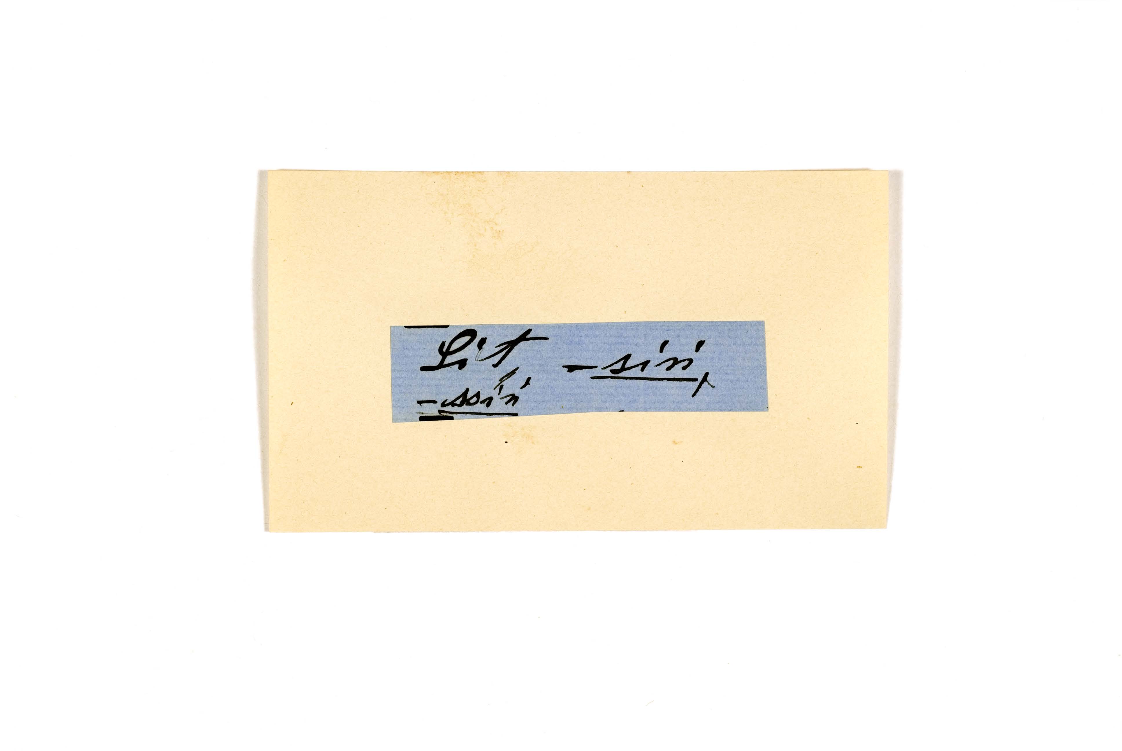ink on blue paper glued on card