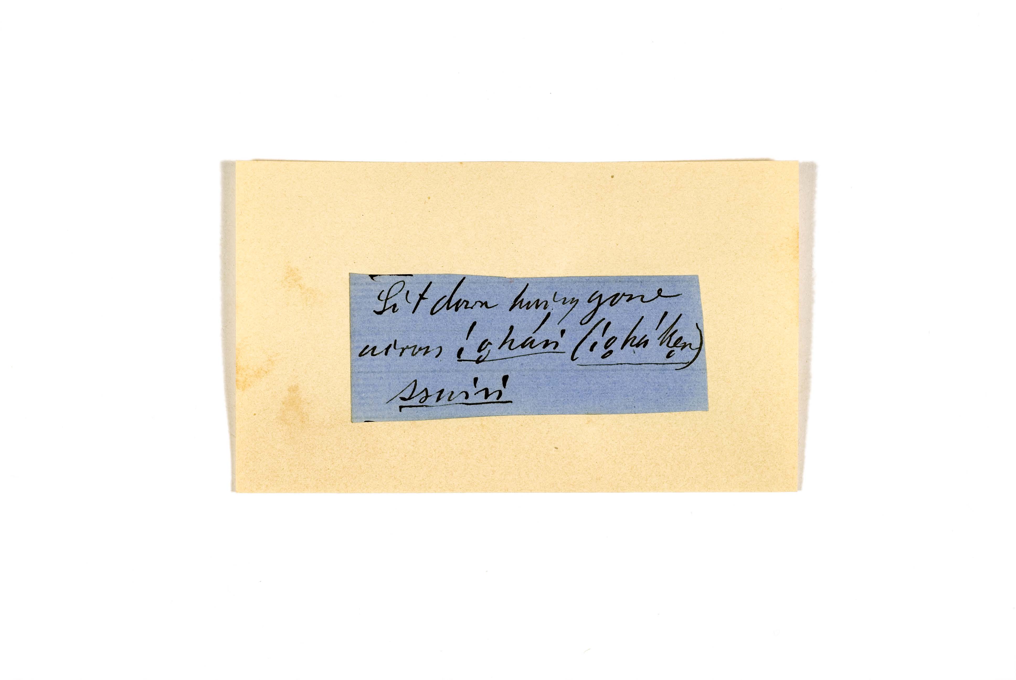 ink on blue paper glued on card