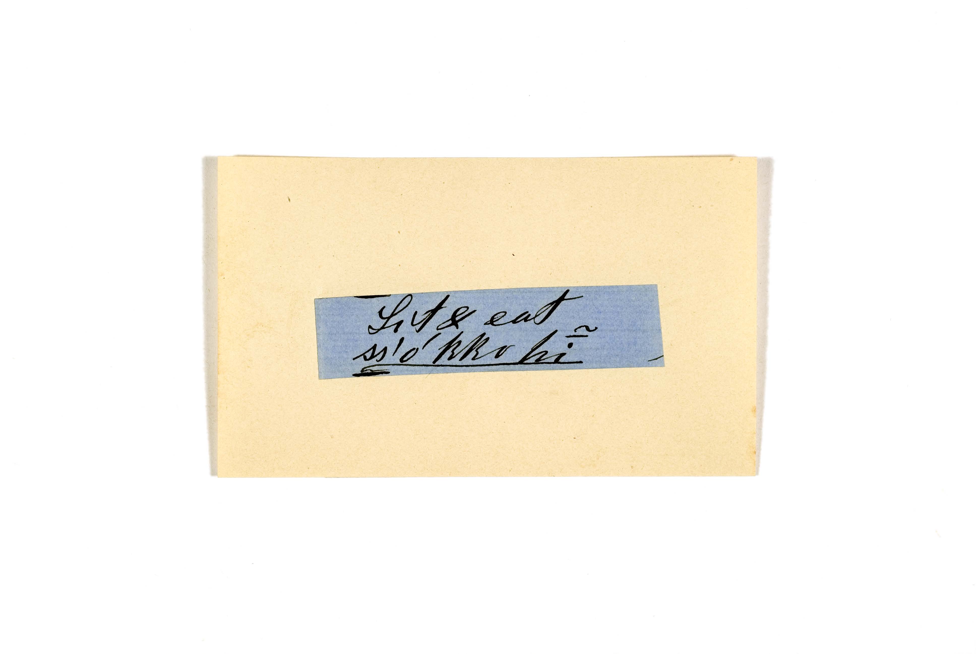 ink on blue paper glued on card