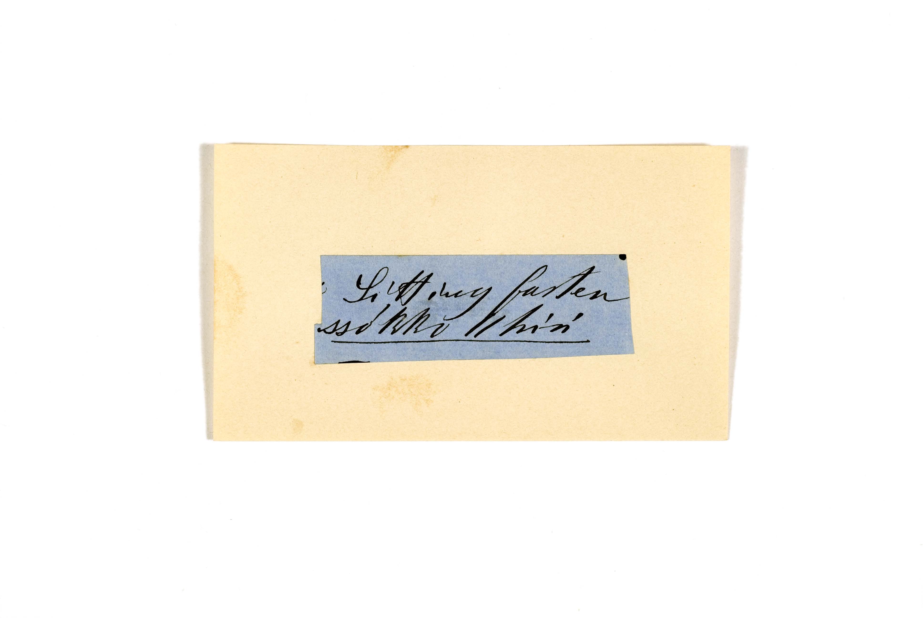 ink on blue paper glued on card
