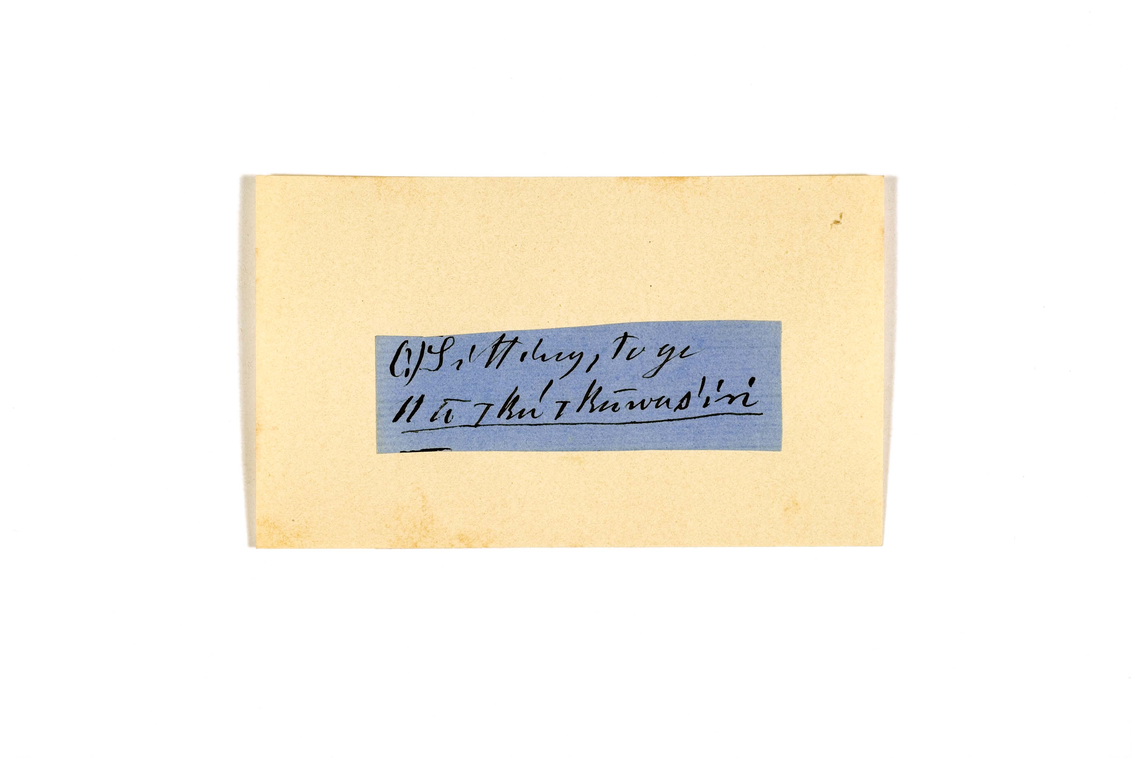 ink on blue paper glued on card