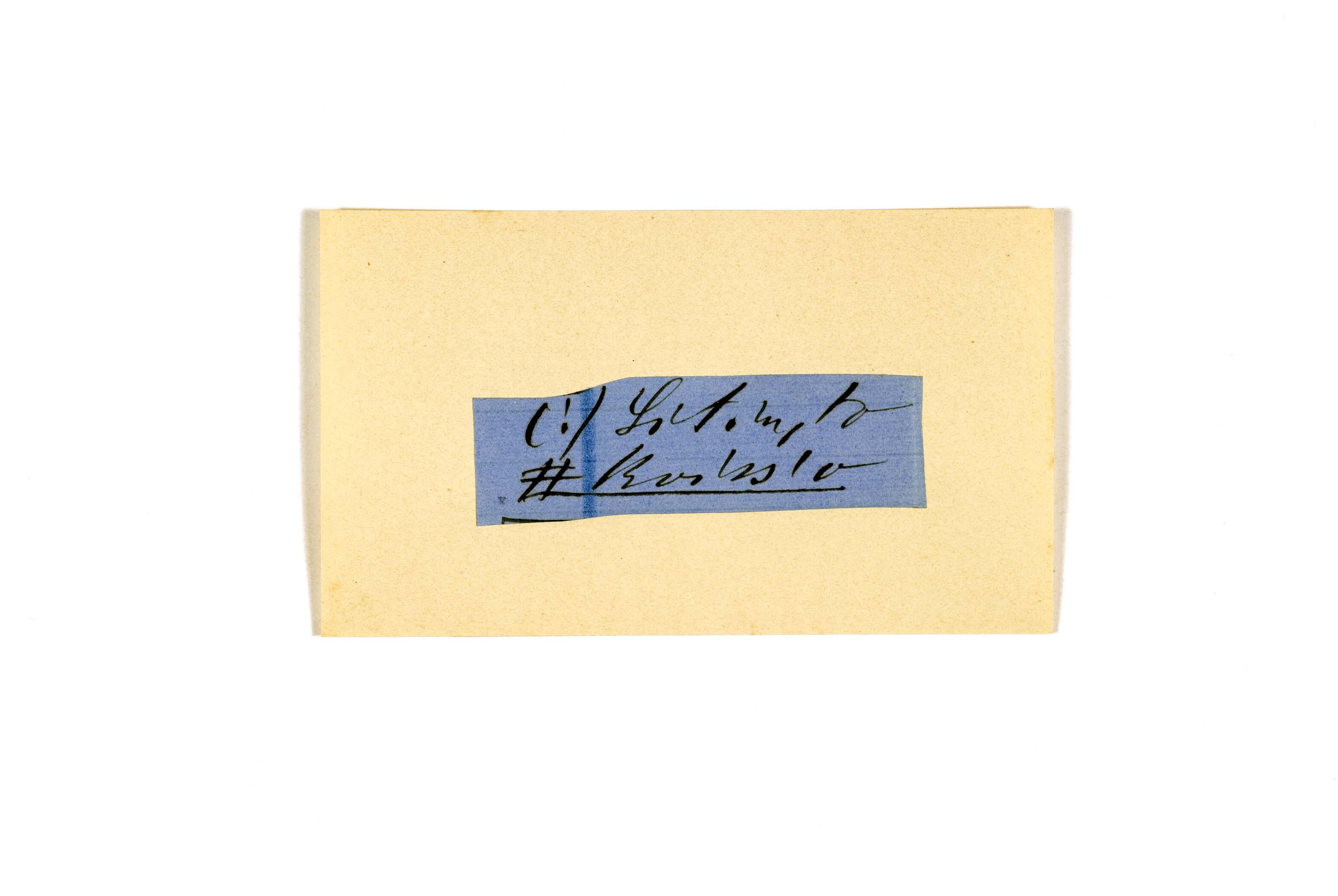 ink on blue paper glued on card