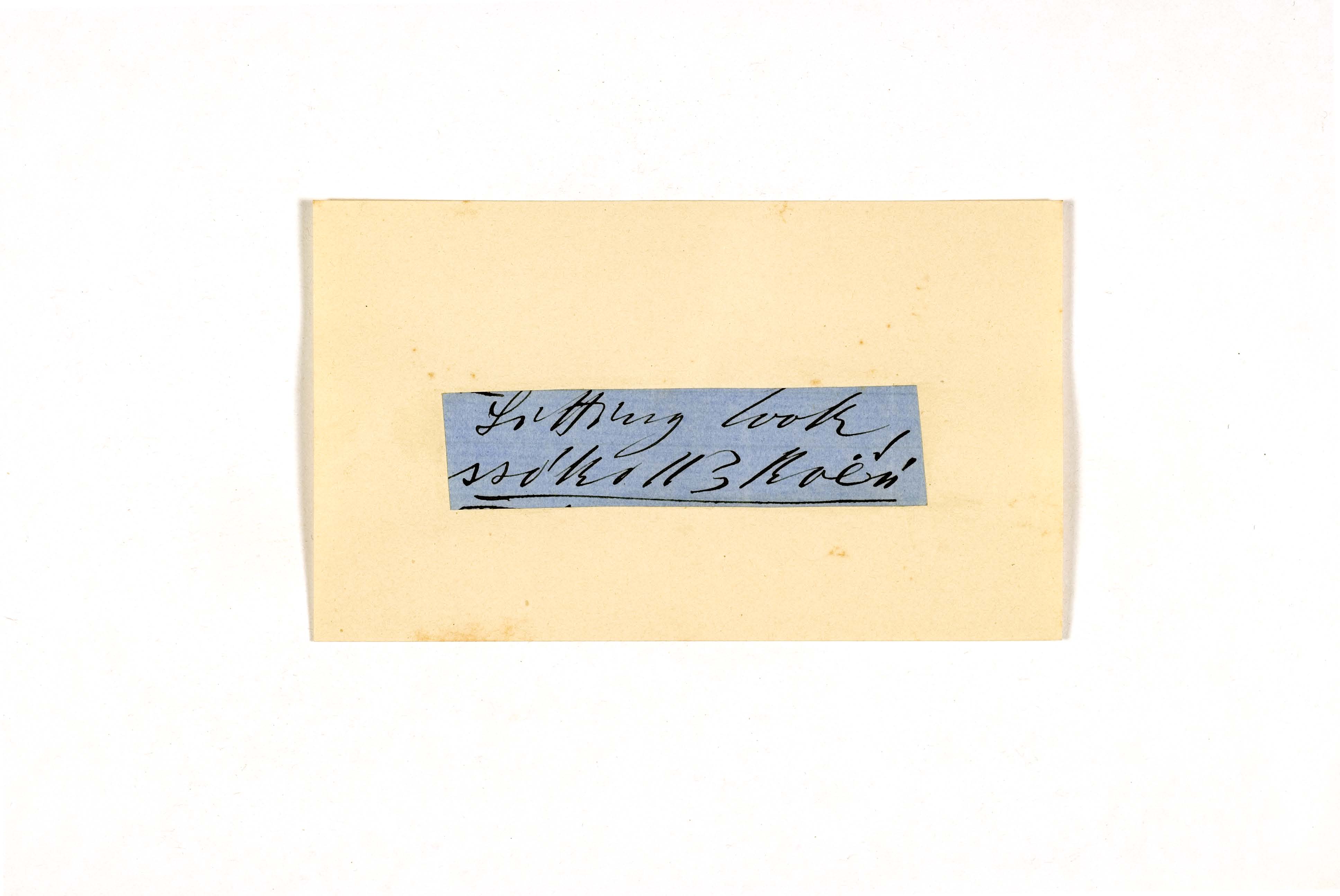 ink on blue paper glued on card