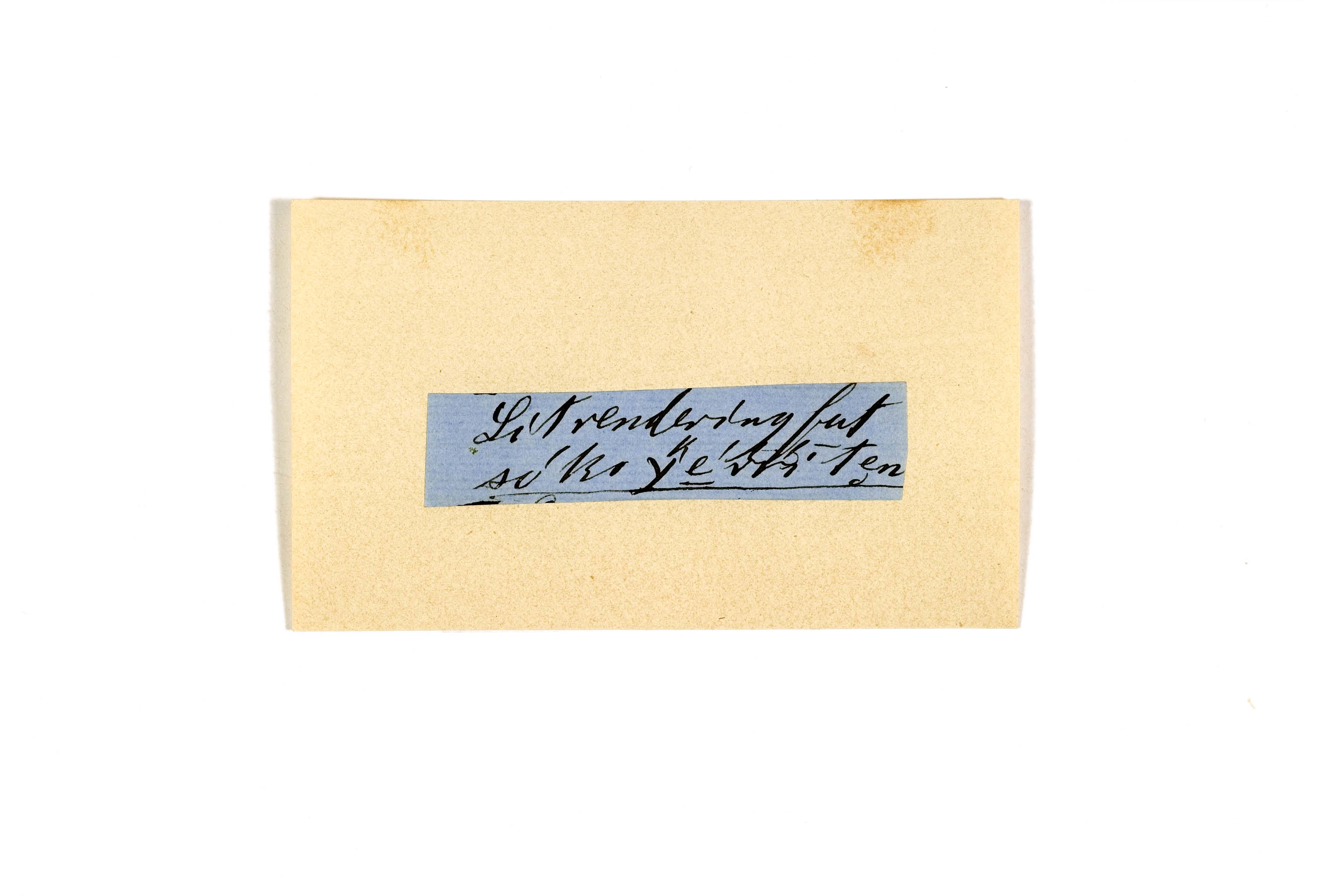 ink on blue paper glued on card