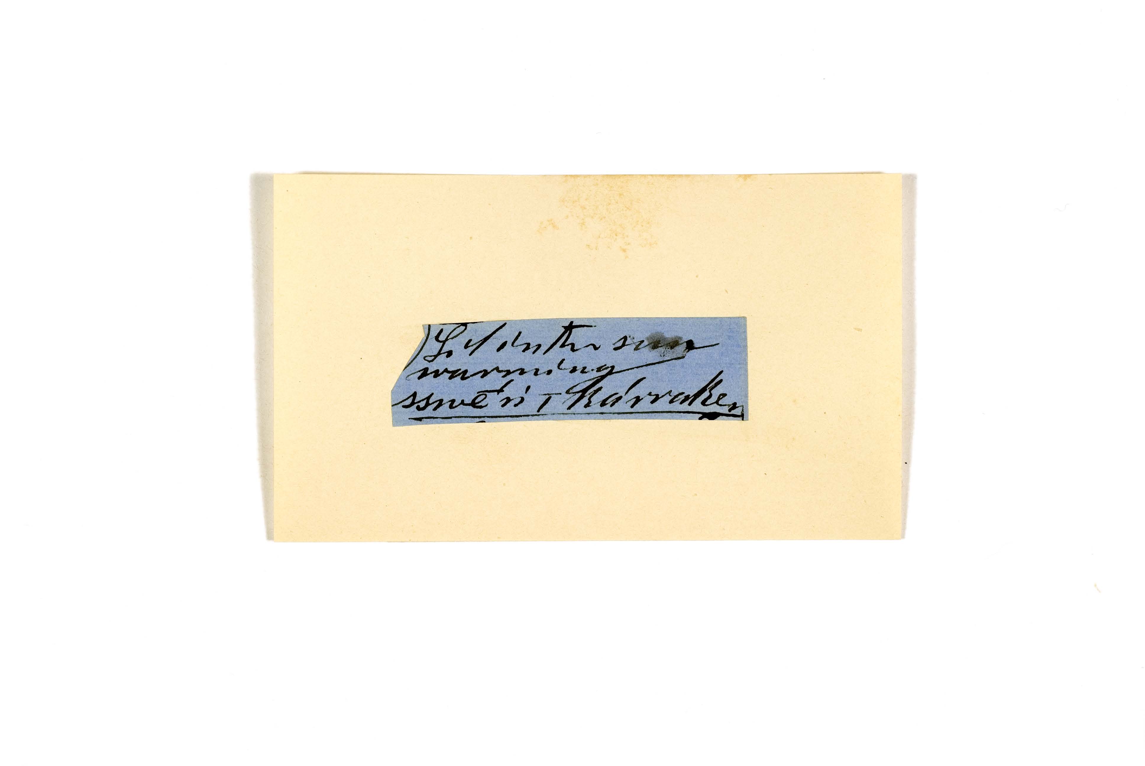 ink on blue paper glued on card