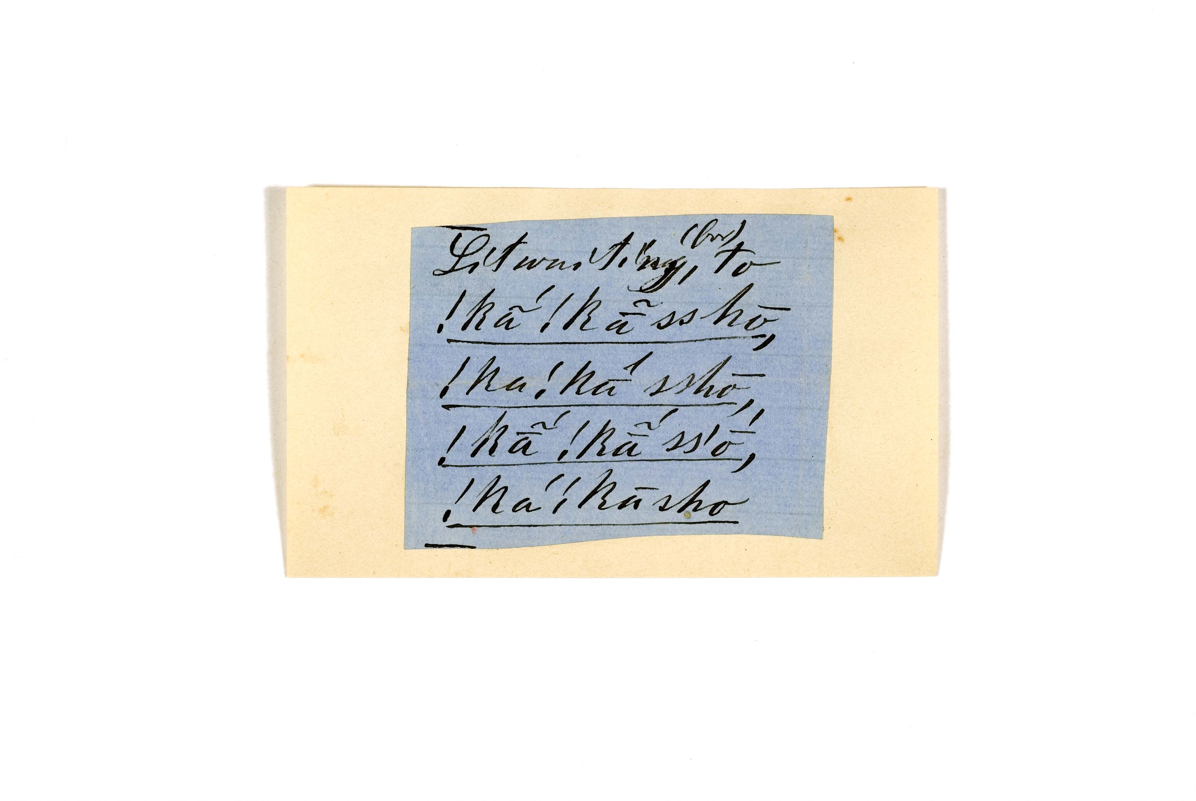 ink on blue paper glued on card