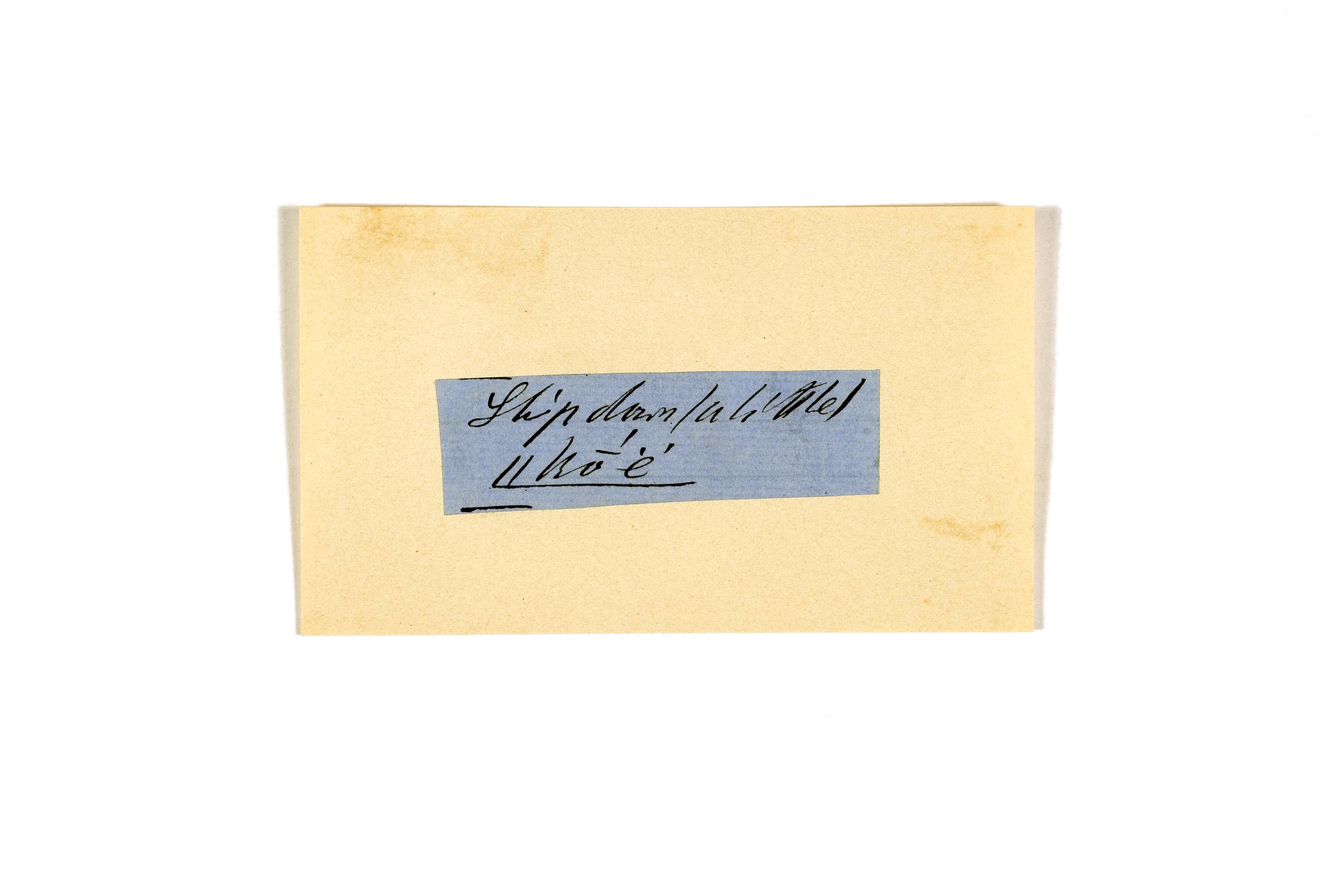 ink on blue paper glued on card