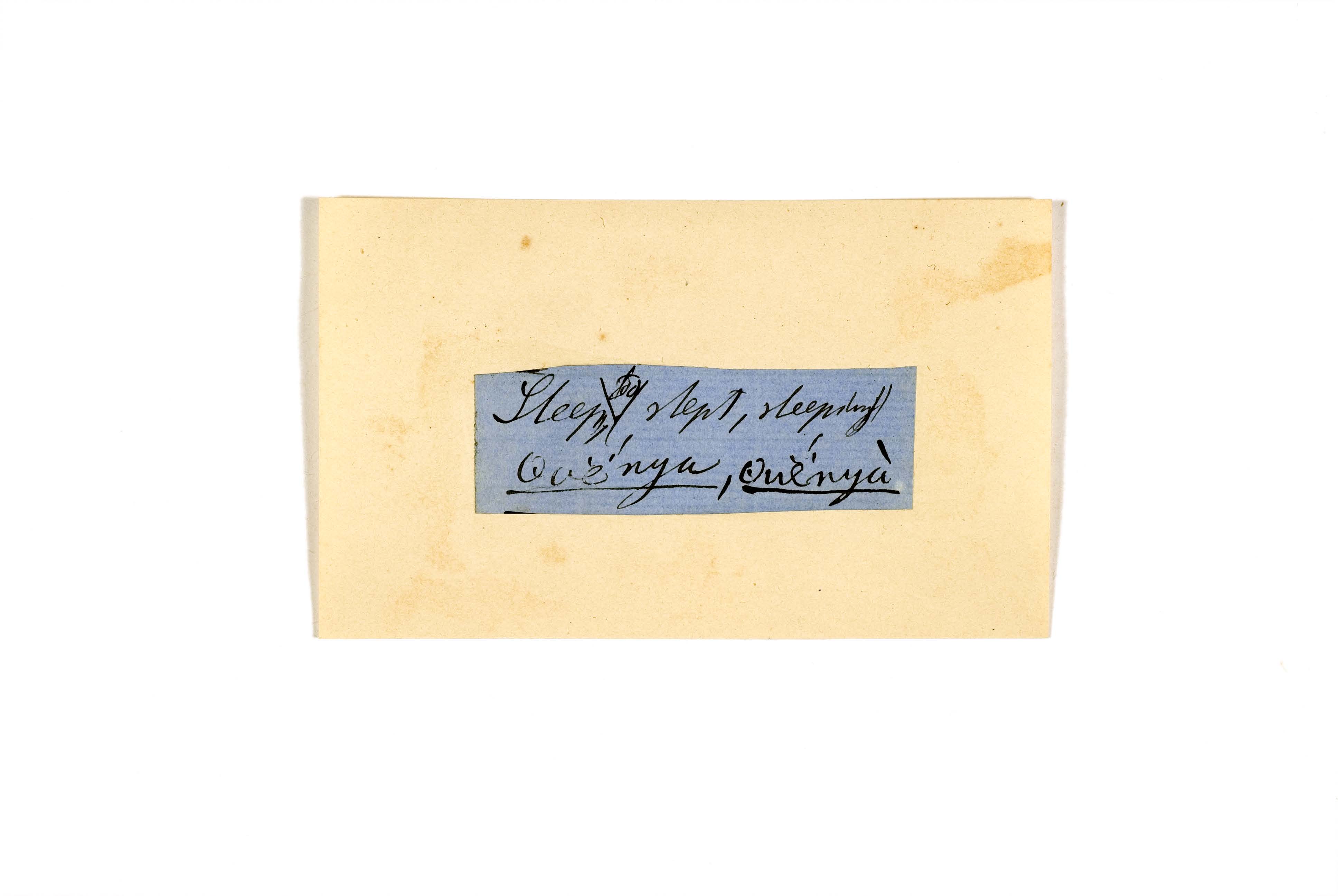 ink on blue paper glued on card