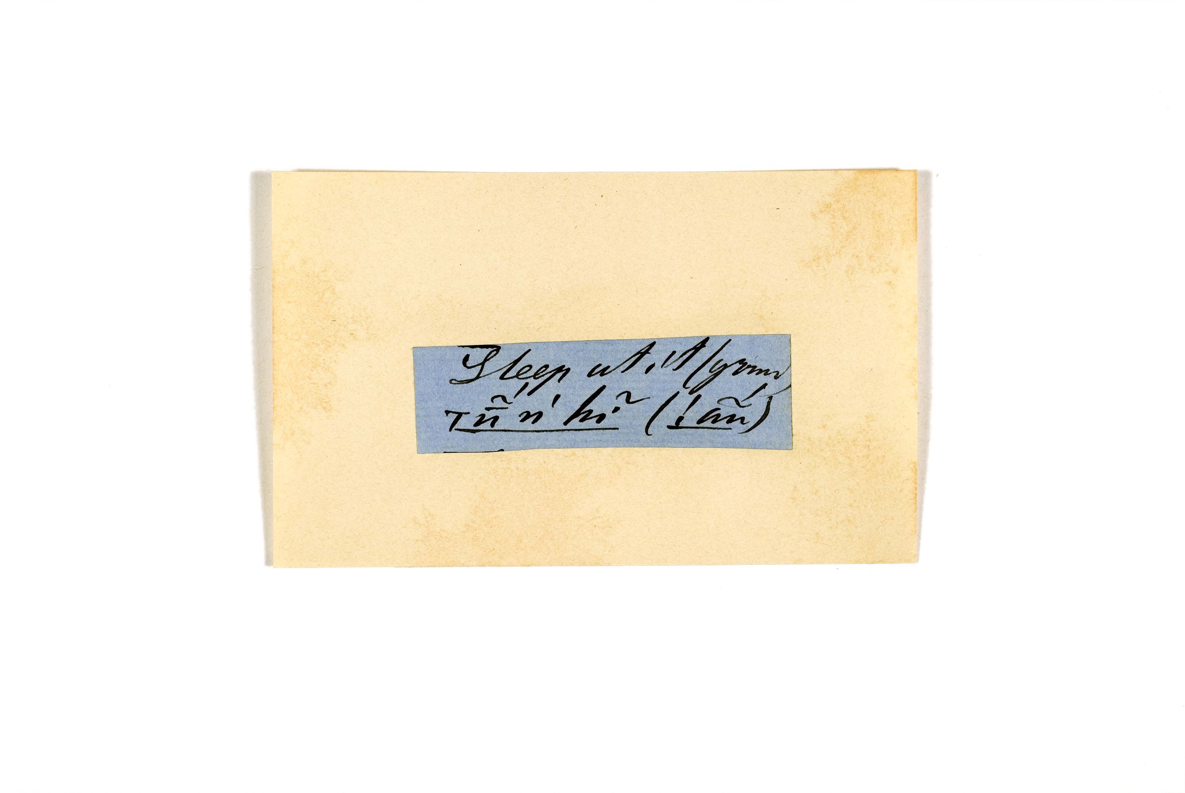 ink on blue paper glued on card