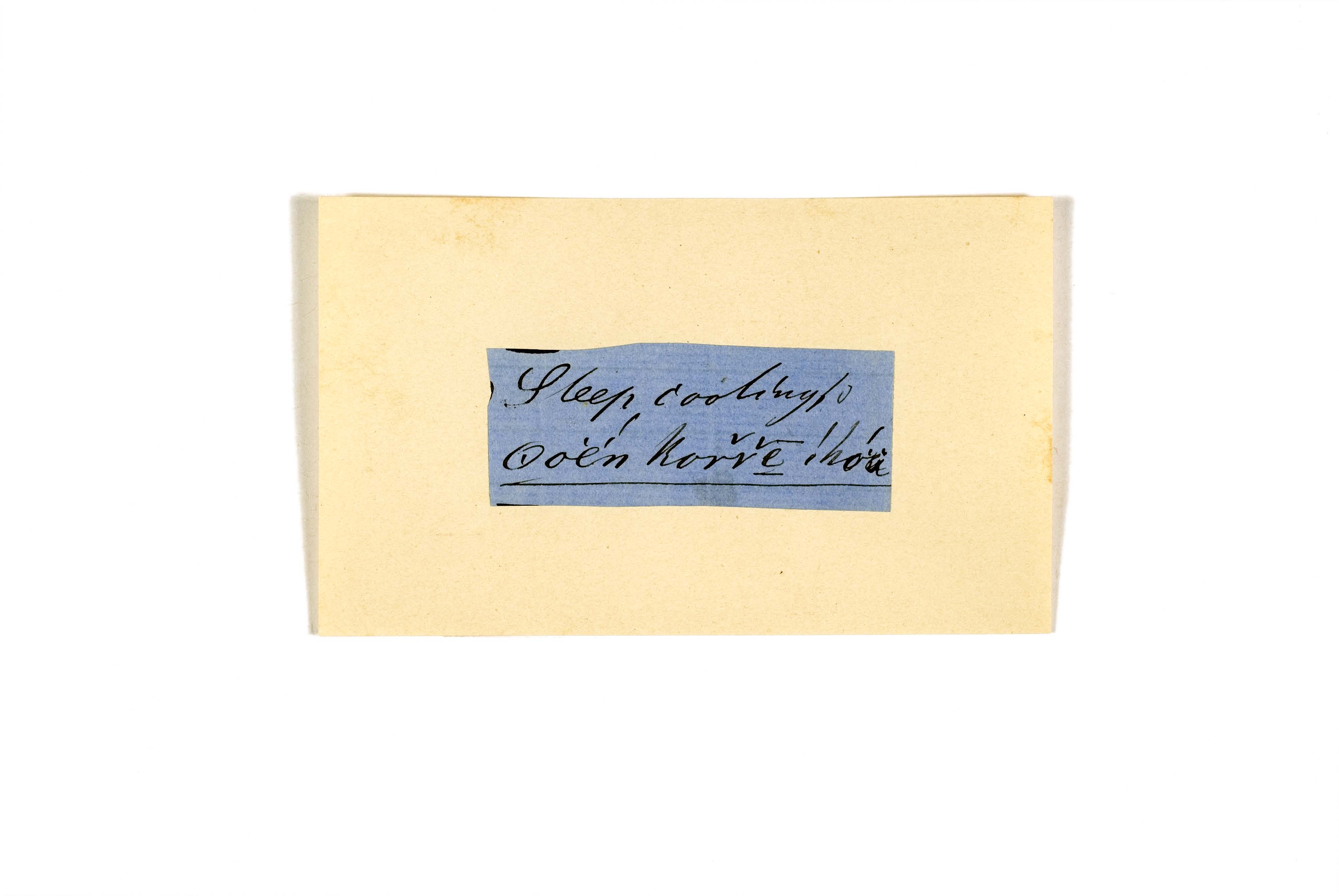 ink on blue paper glued on card