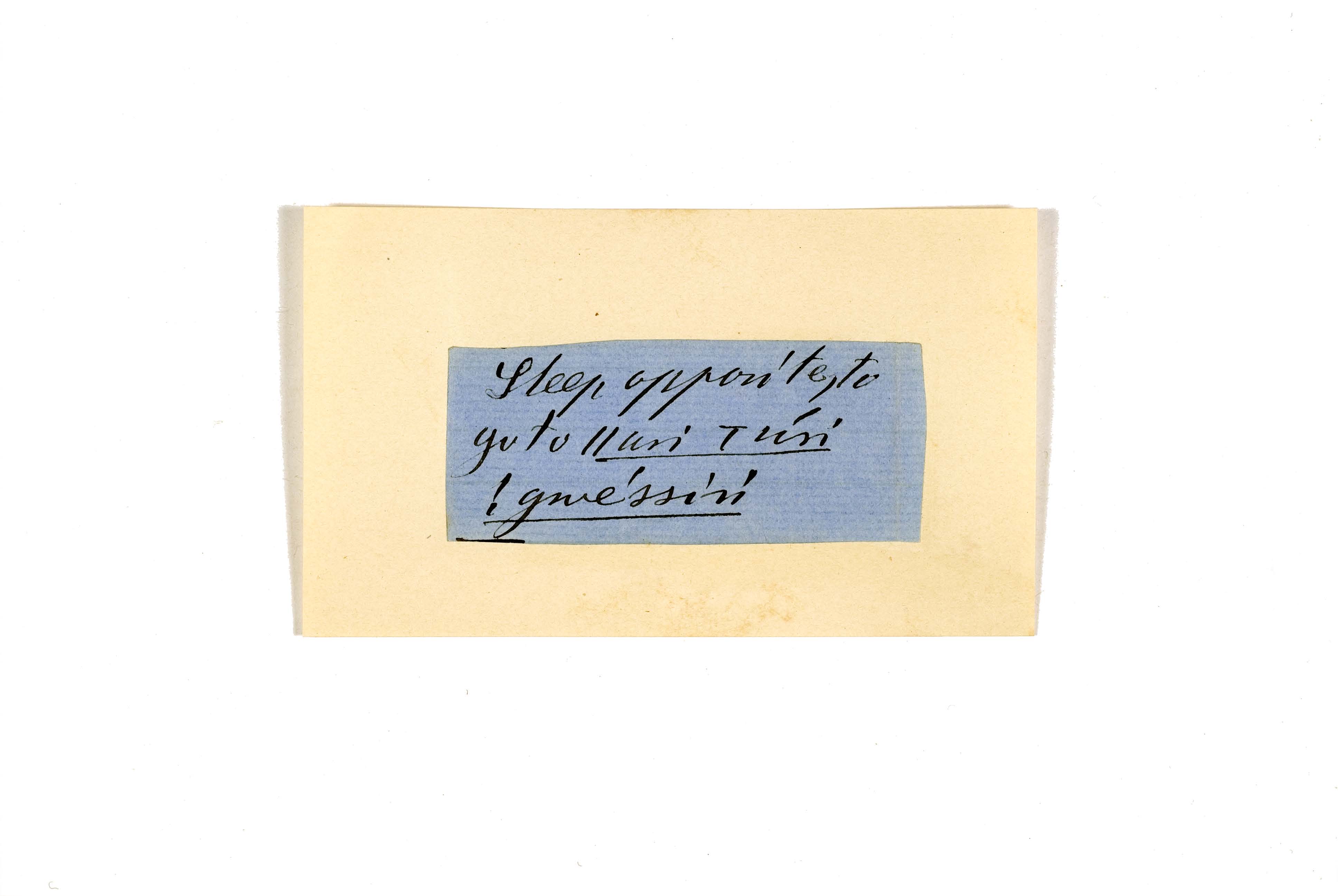 ink on blue paper glued on card