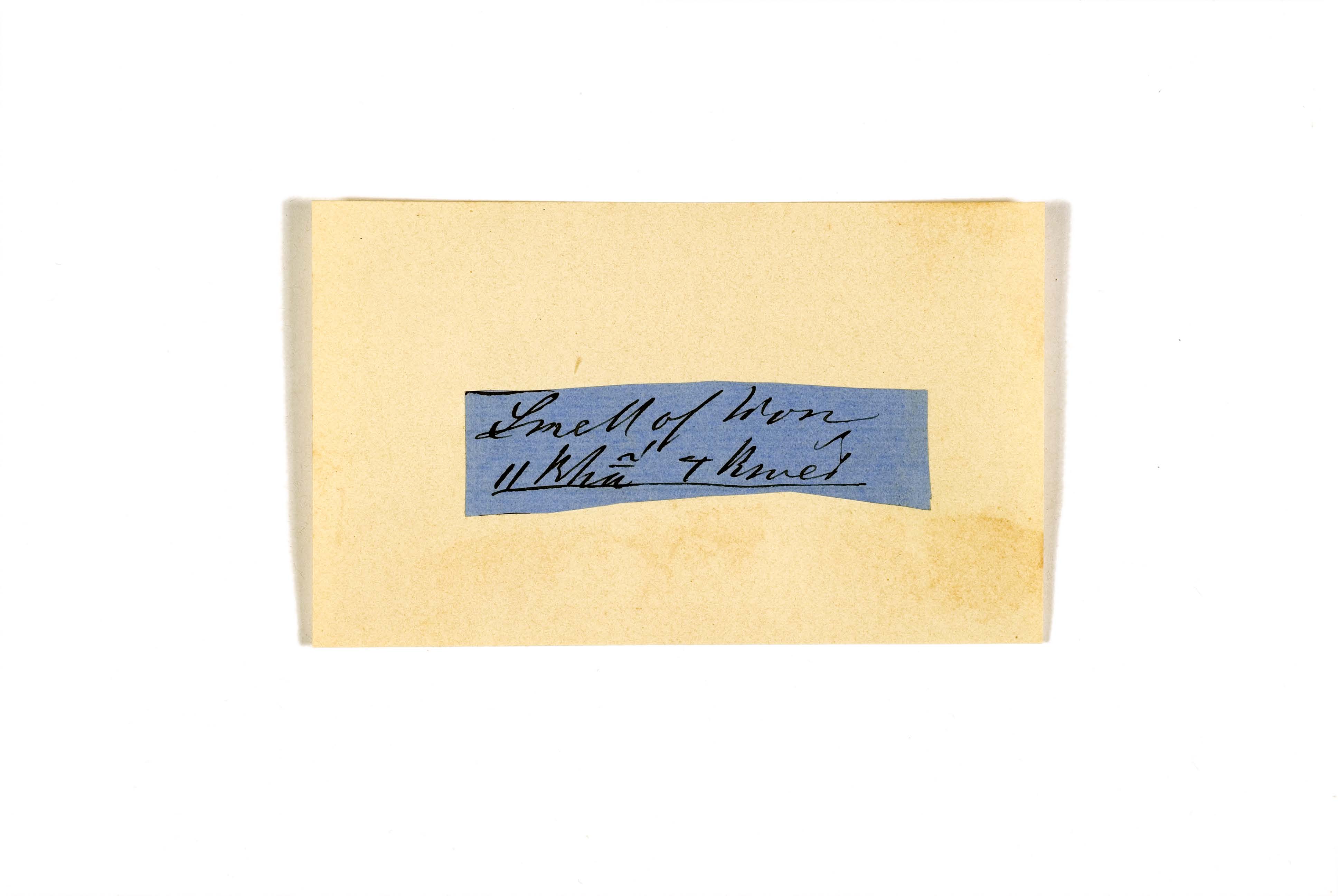 ink on blue paper glued on card