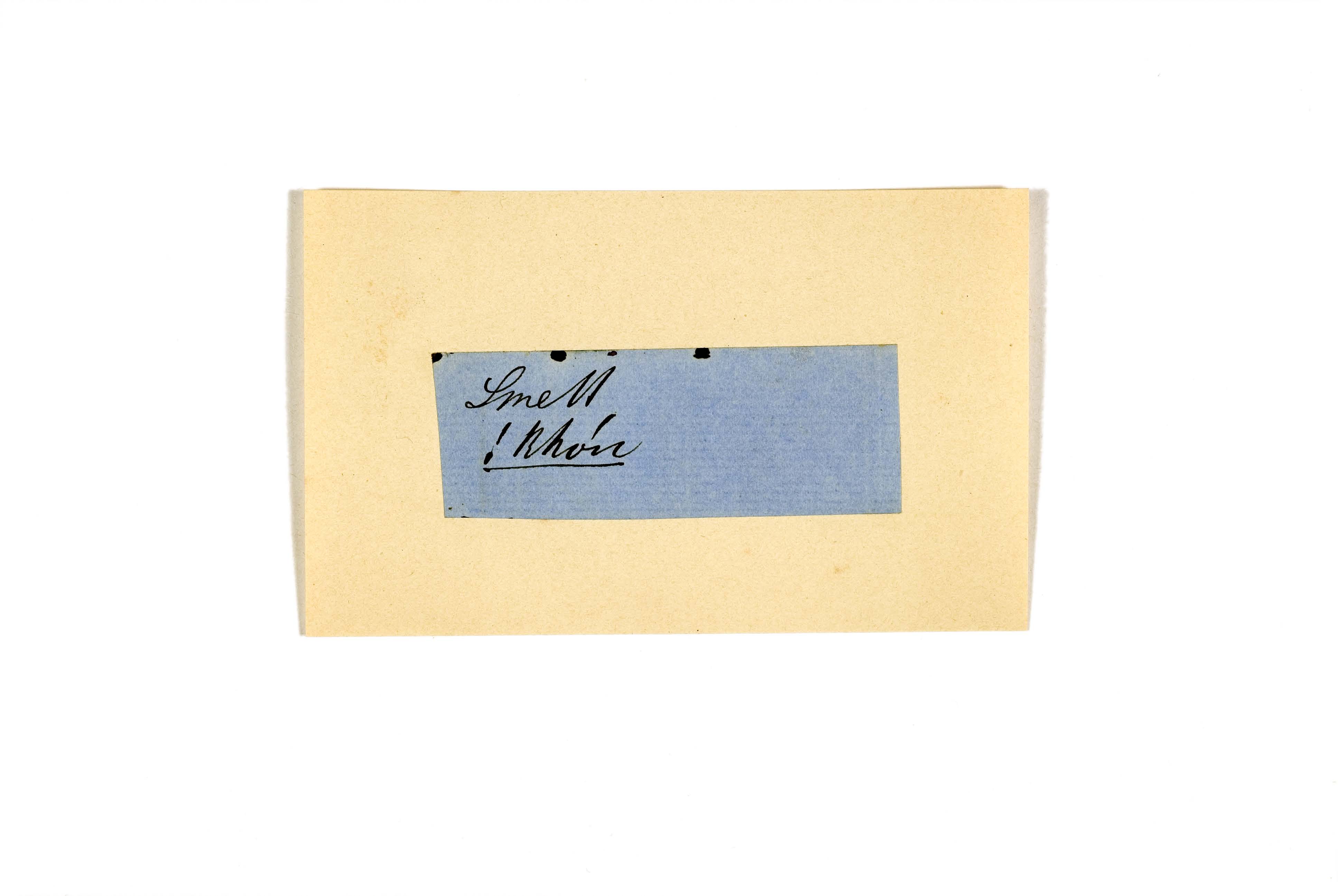 ink on blue paper glued on card
