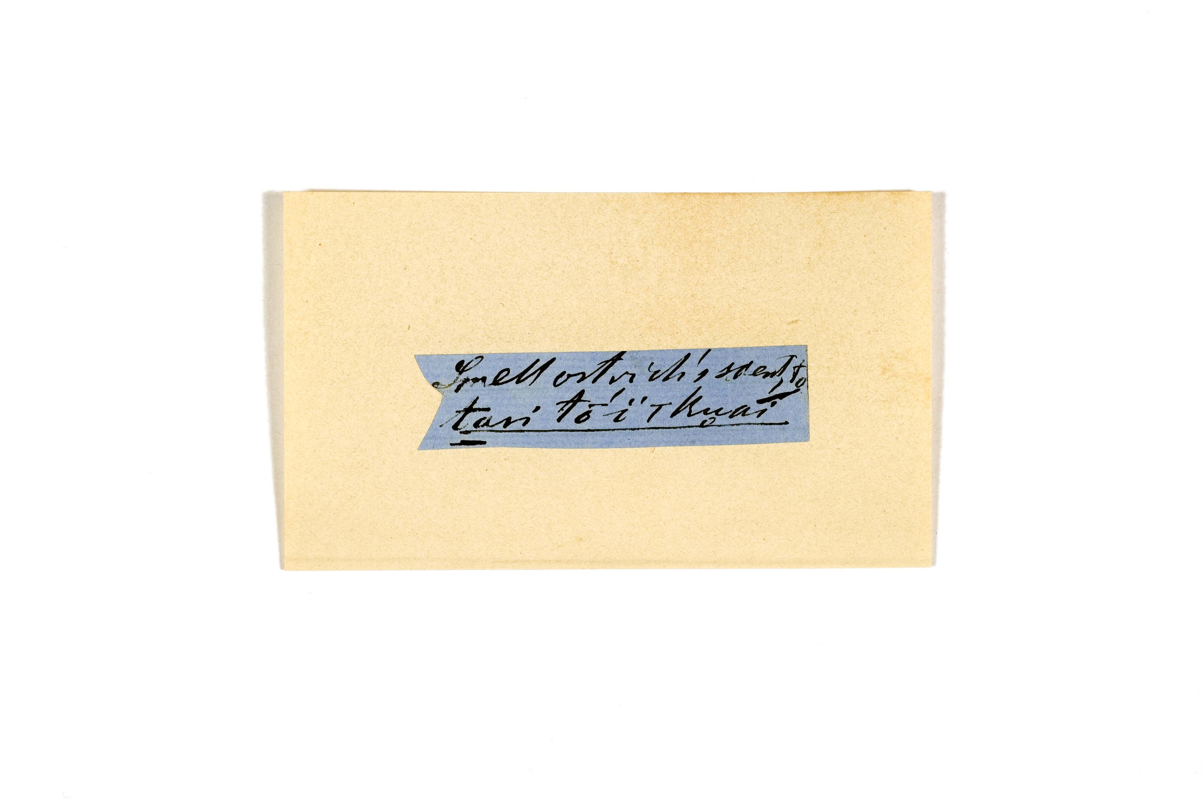 ink on blue paper glued on card