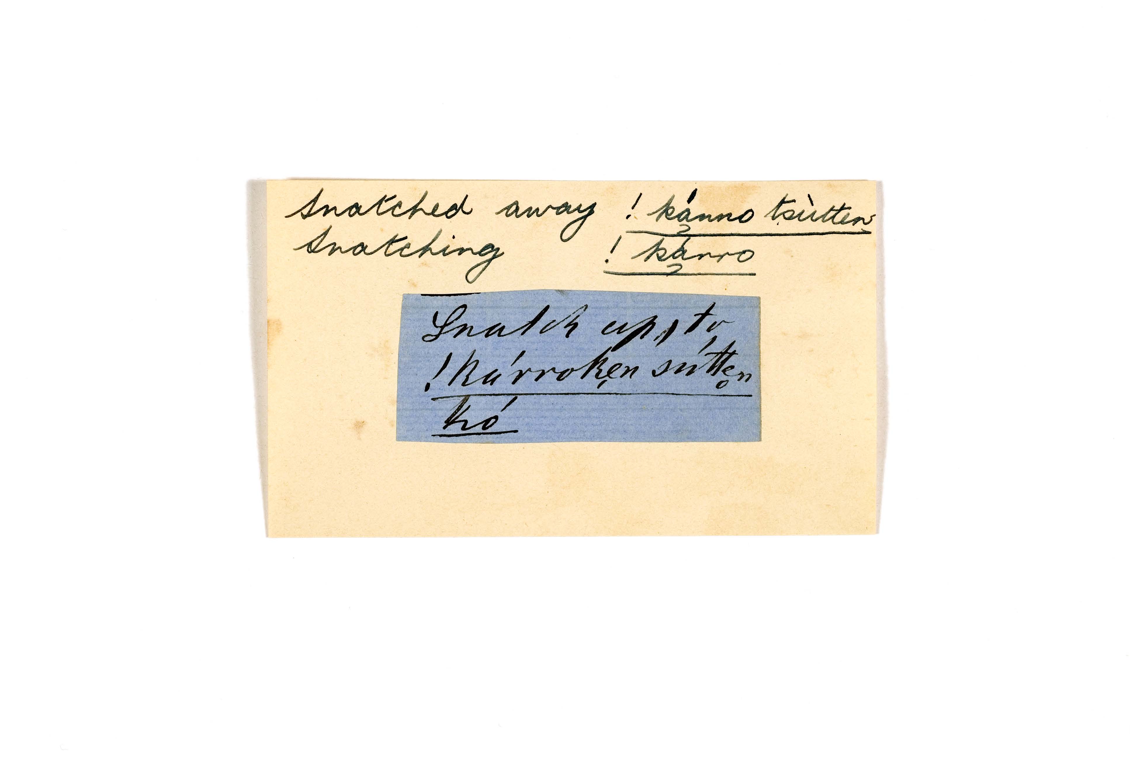 ink on blue paper glued on card