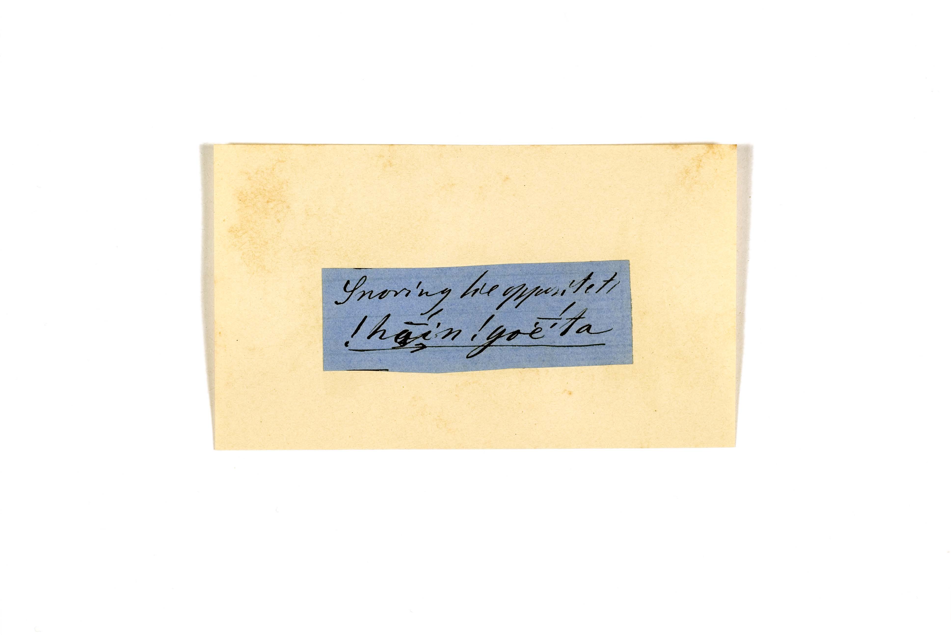 ink on blue paper glued on card