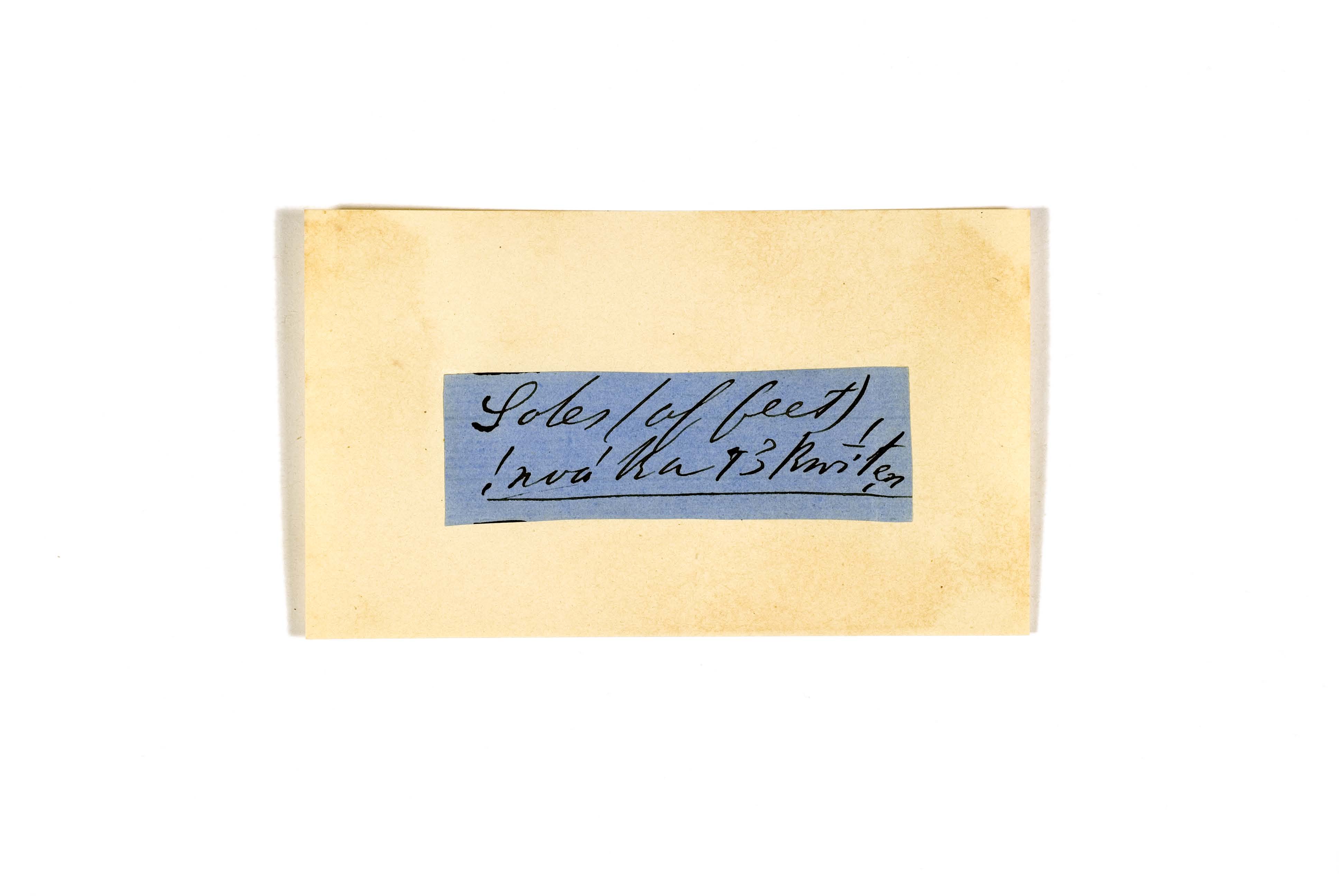ink on blue paper glued on card