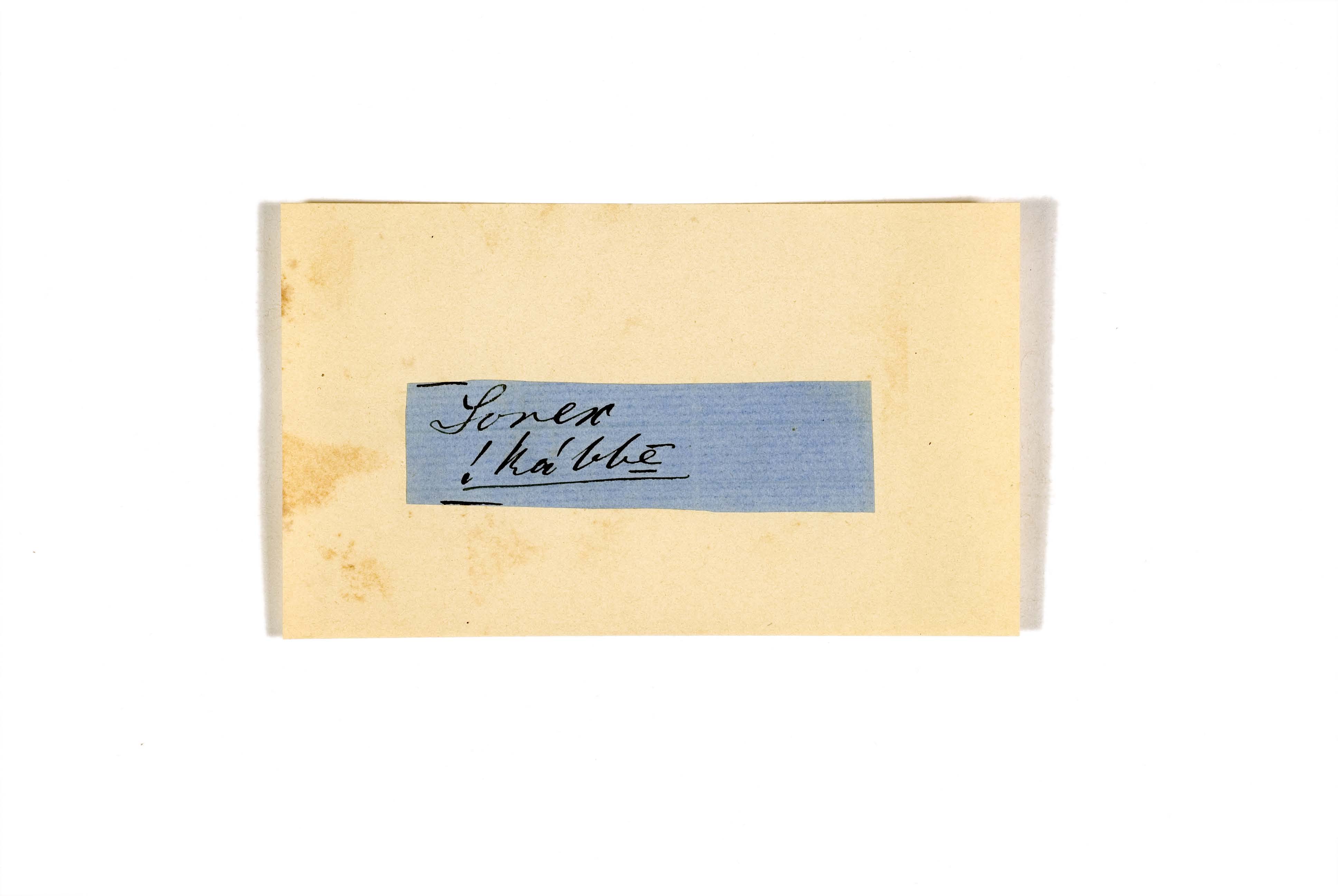 ink on blue paper glued on card