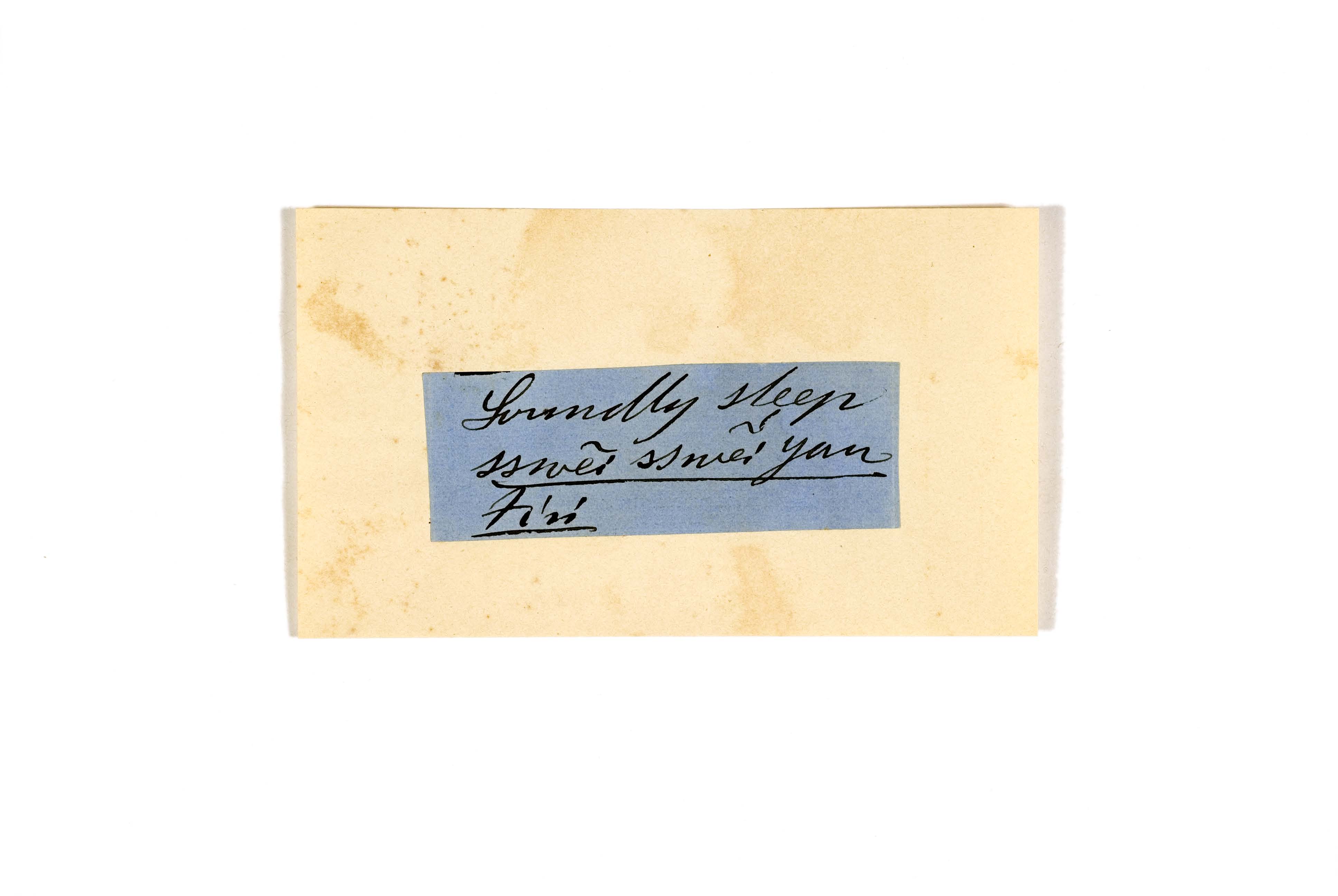 ink on blue paper glued on card