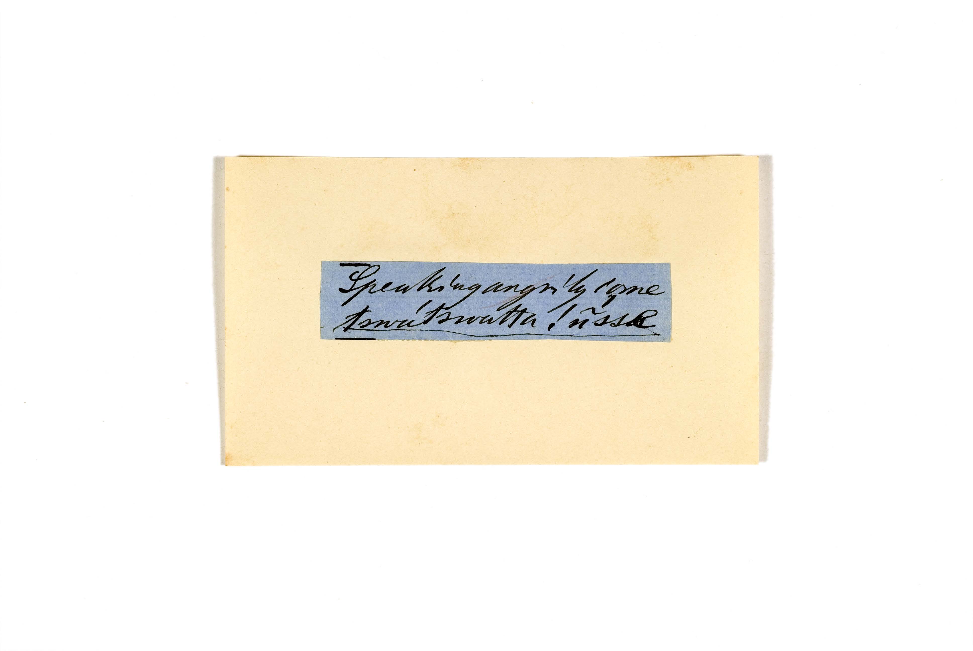 ink on blue paper glued on card