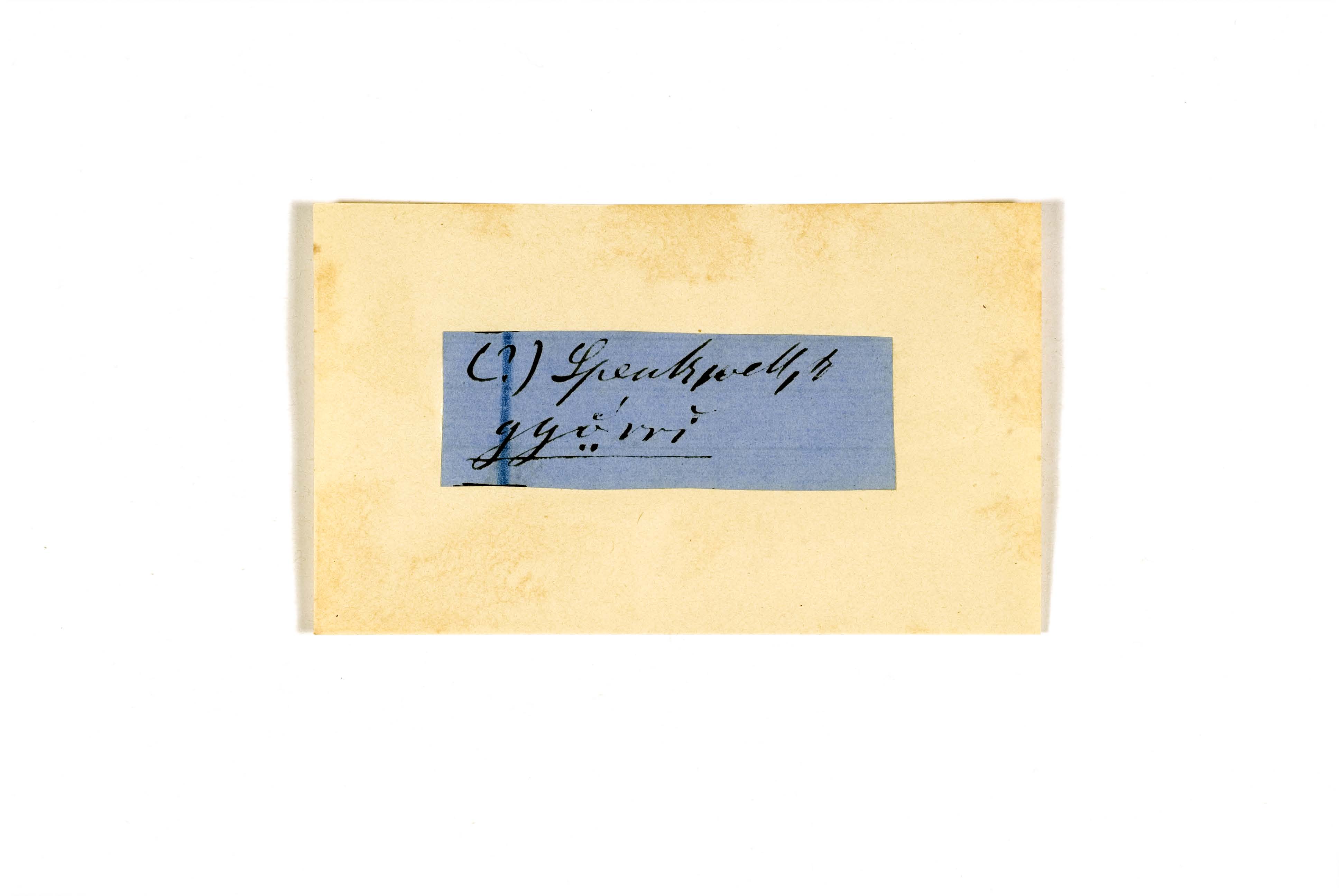 ink on blue paper glued on card