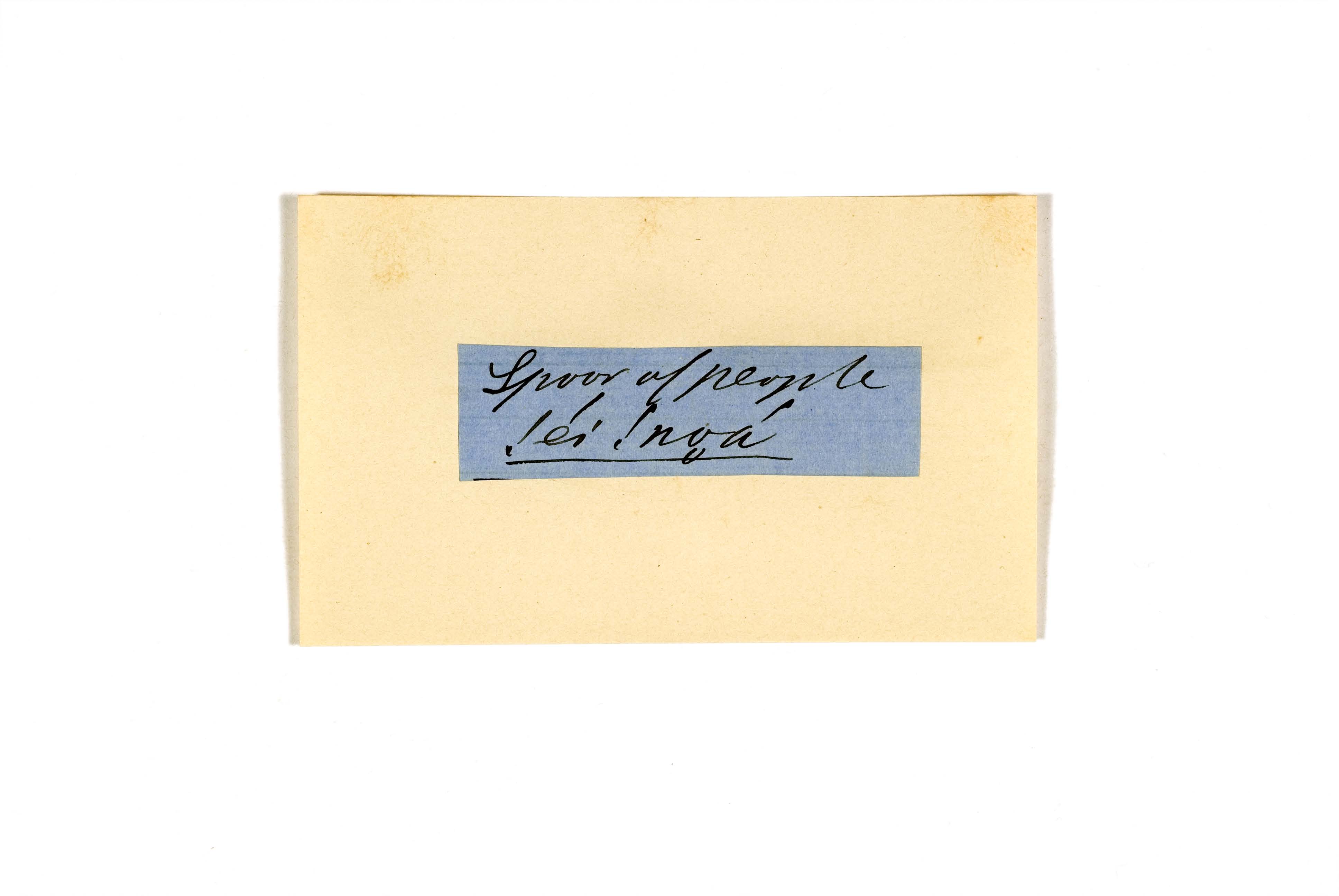 ink on blue paper glued on card