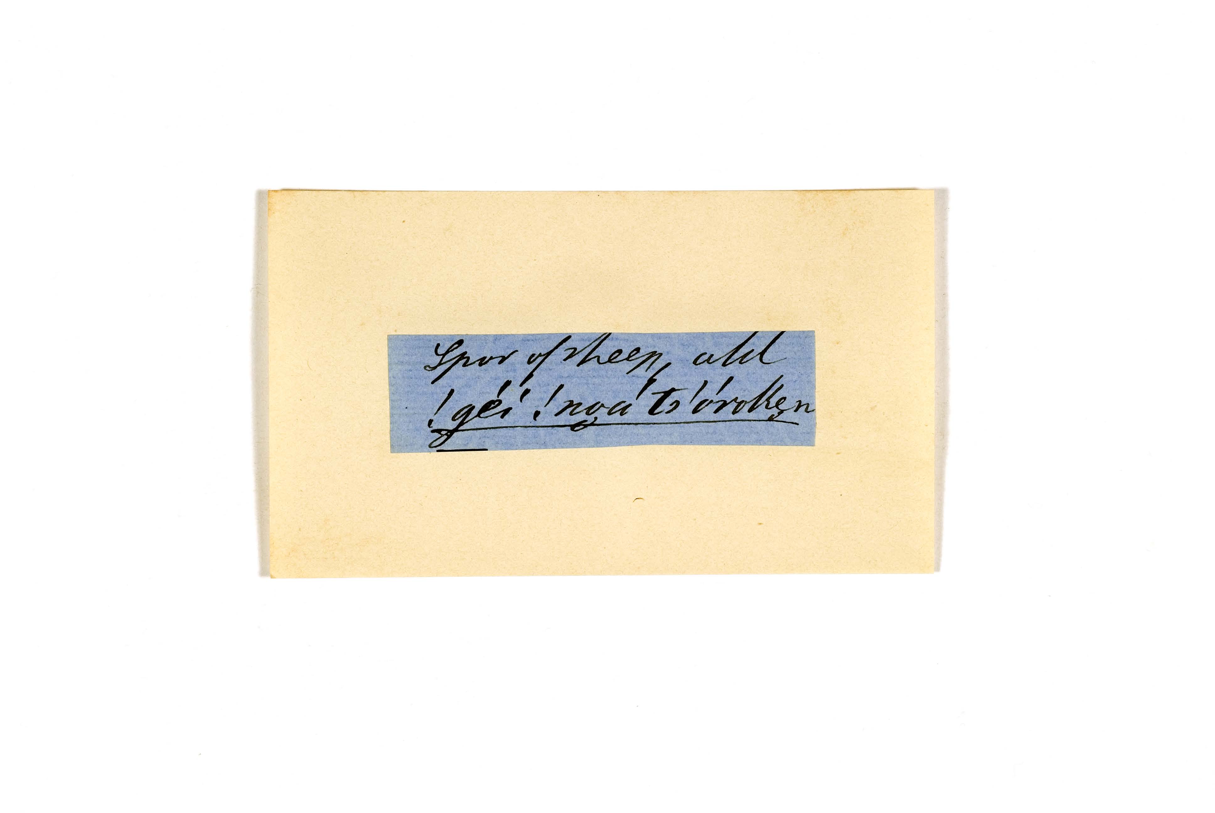 ink on blue paper glued on card