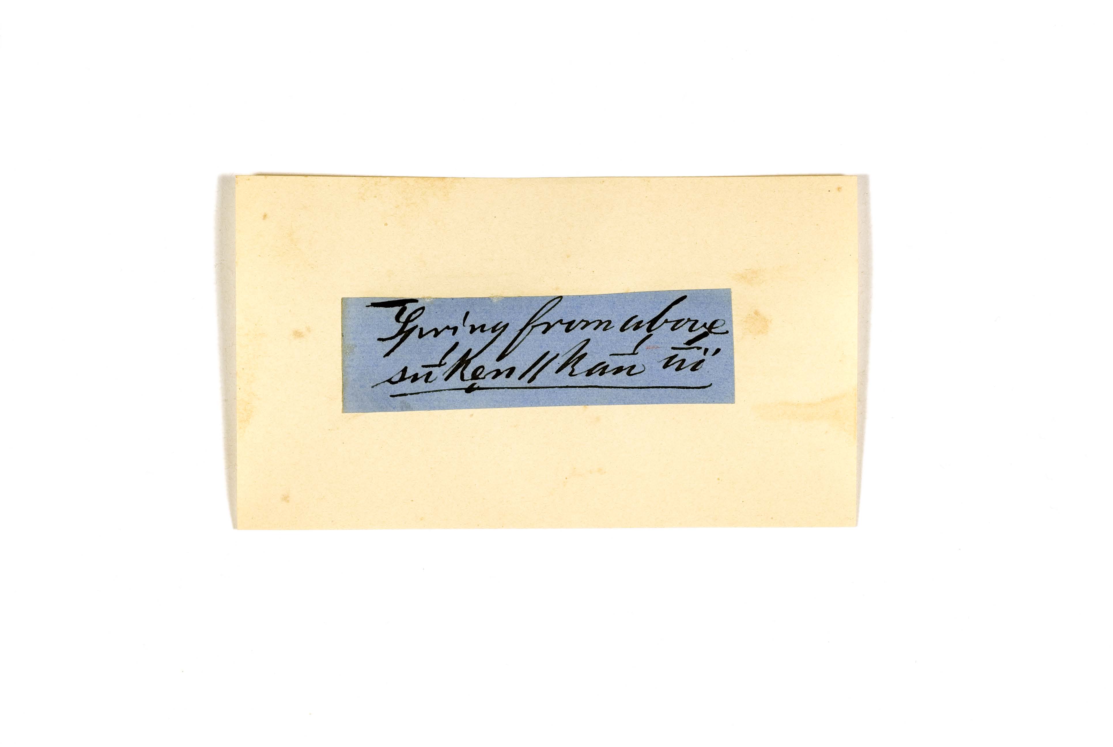 ink on blue paper glued on card