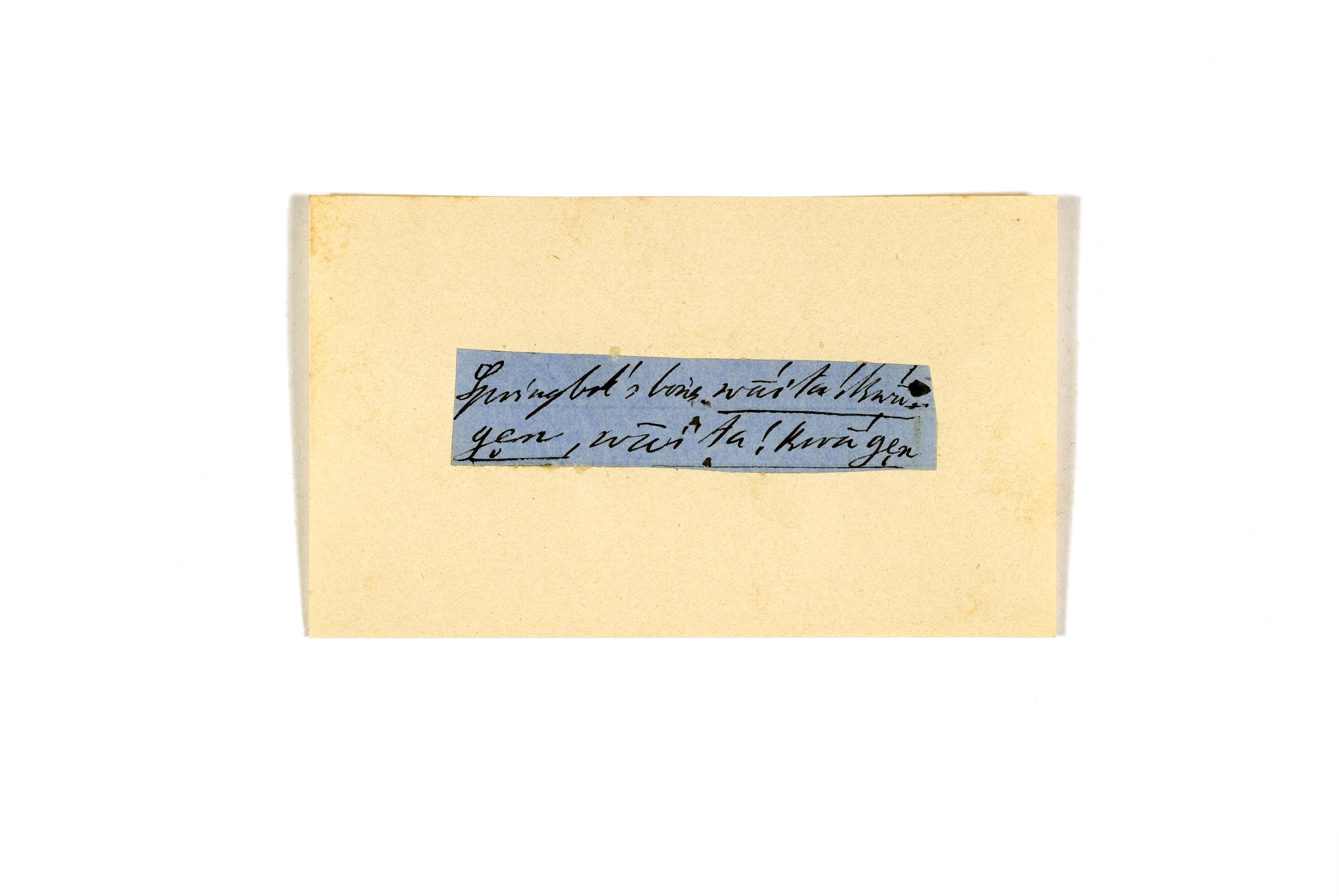 ink on blue paper glued on card