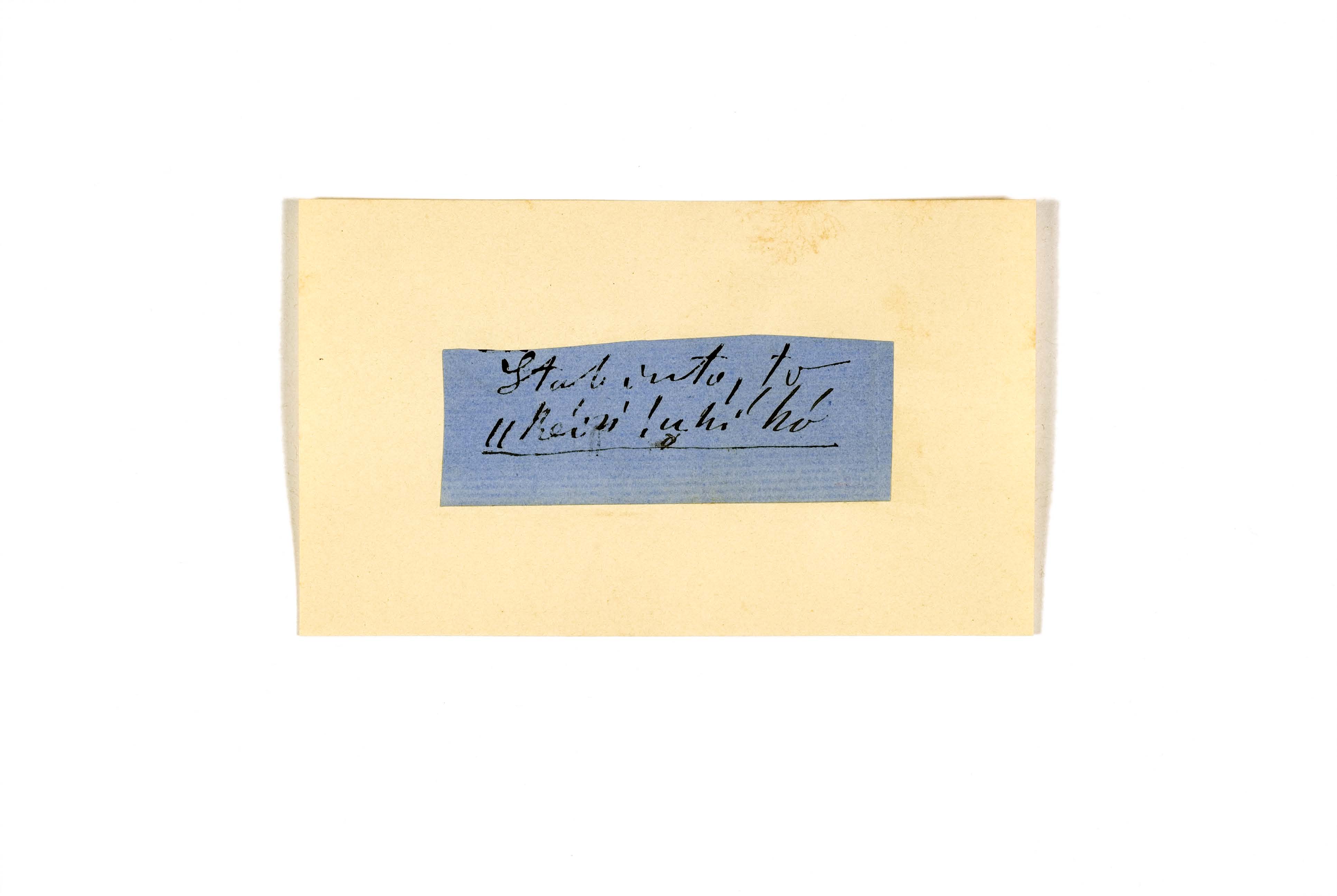 ink on blue paper glued on card