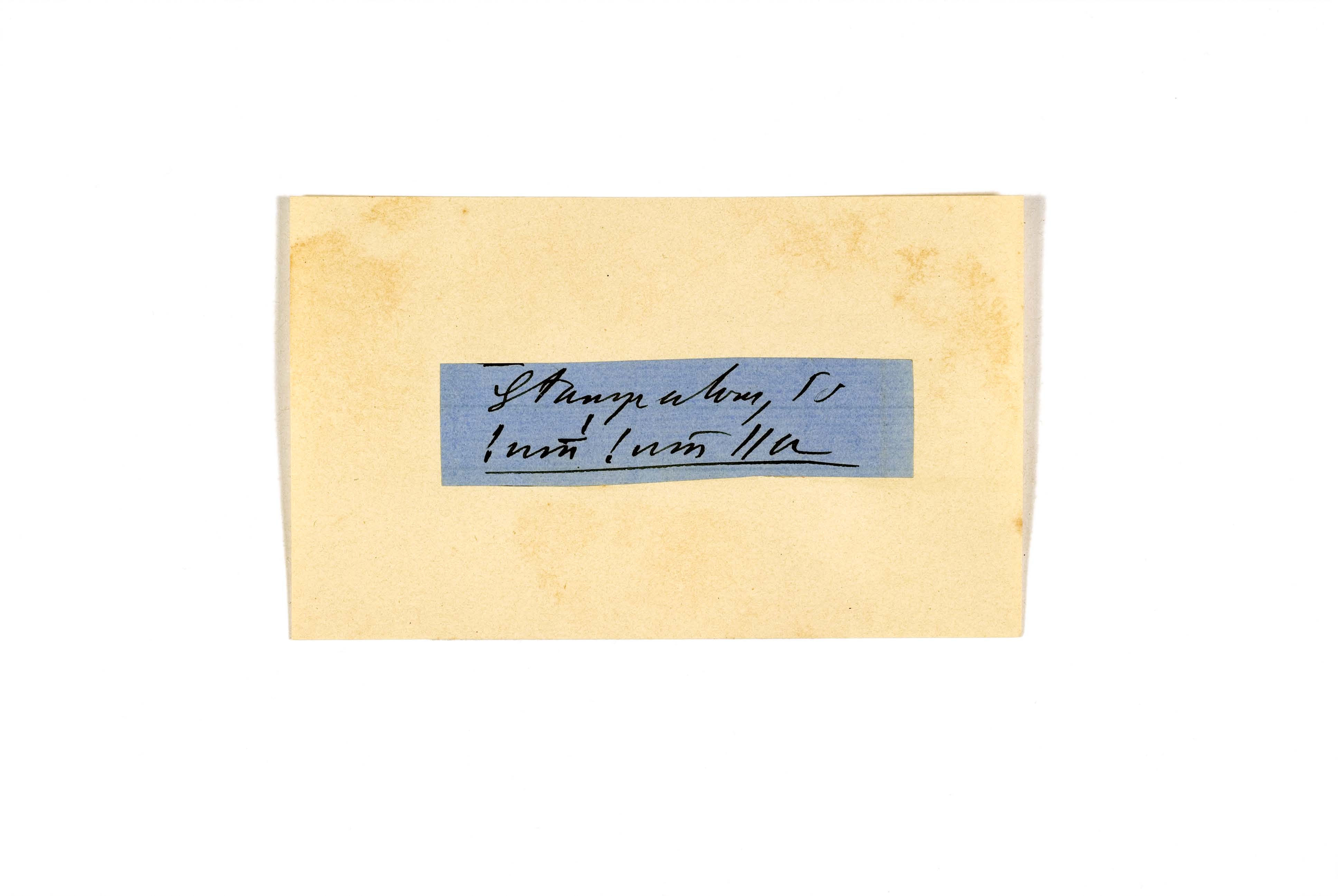 ink on blue paper glued on card