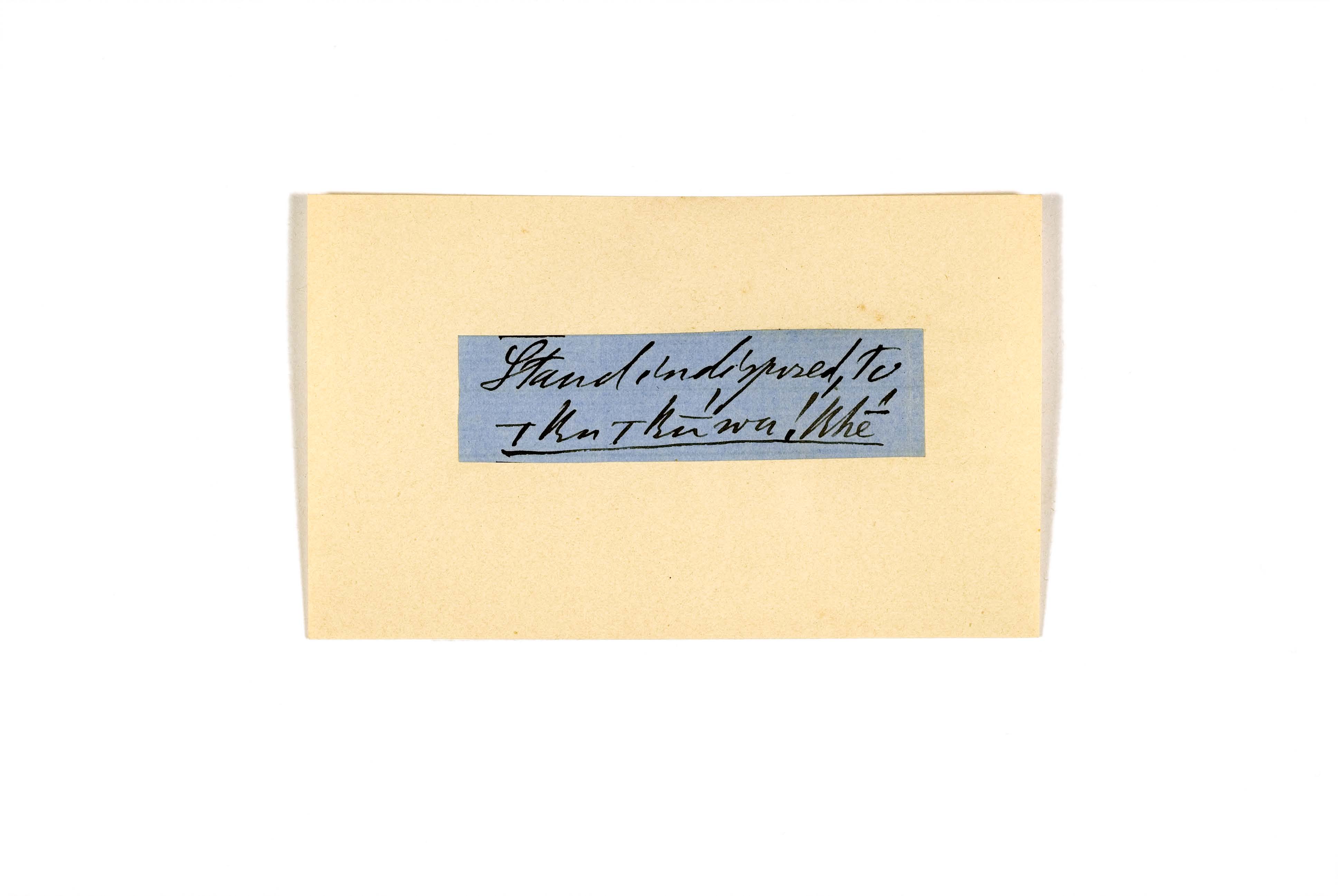 ink on blue paper glued on card