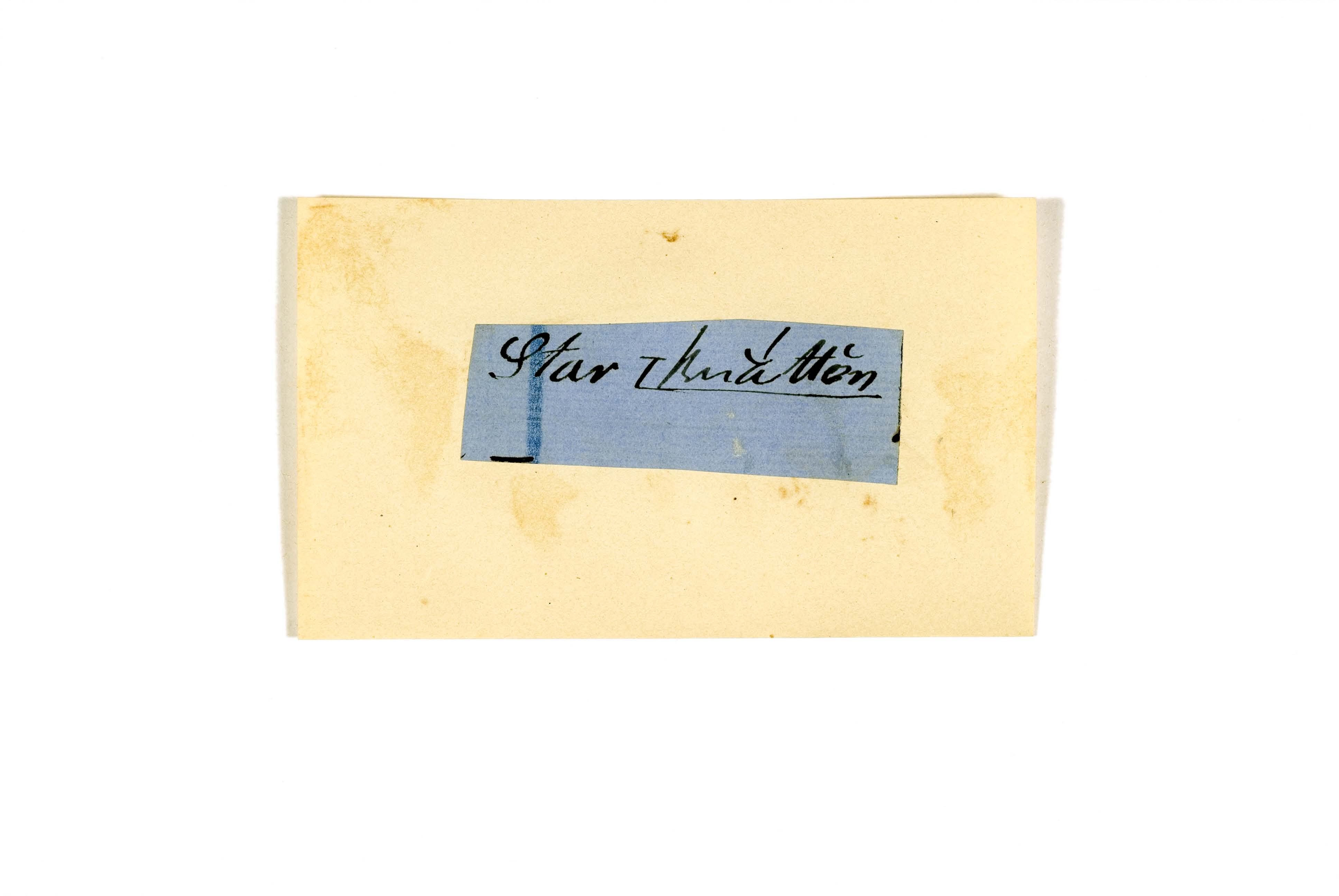 ink on blue paper glued on card