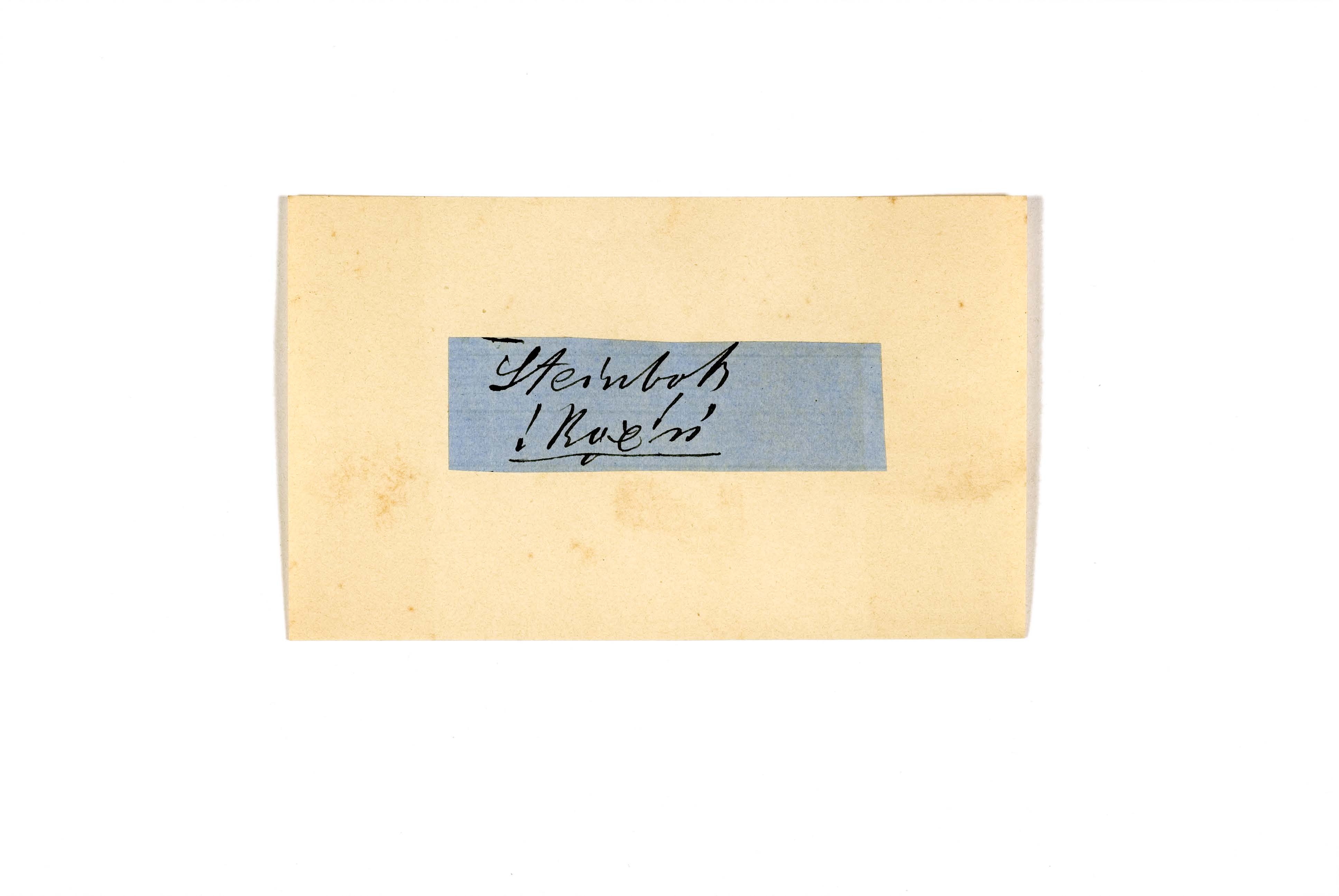 ink on blue paper glued on card