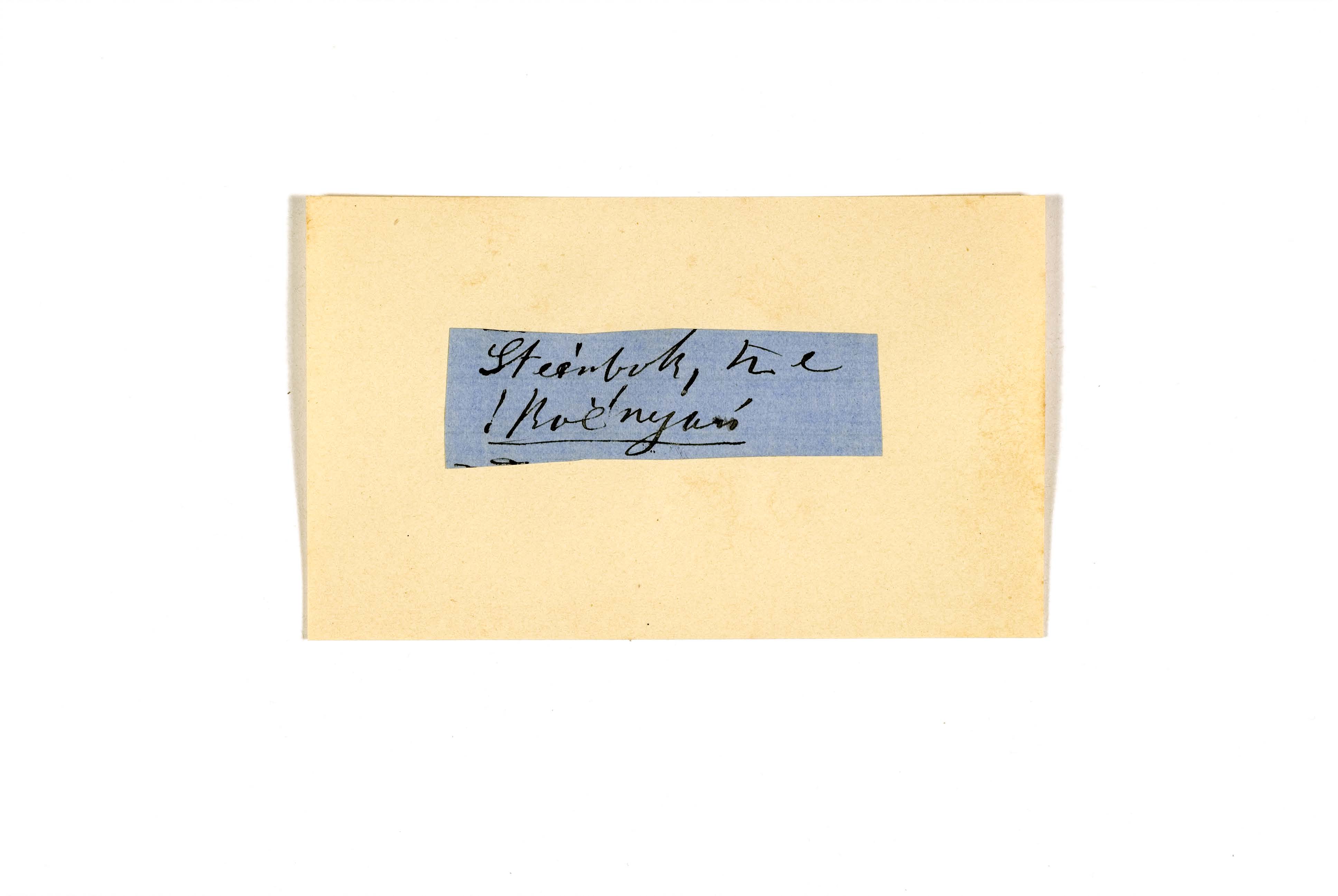 ink on blue paper glued on card