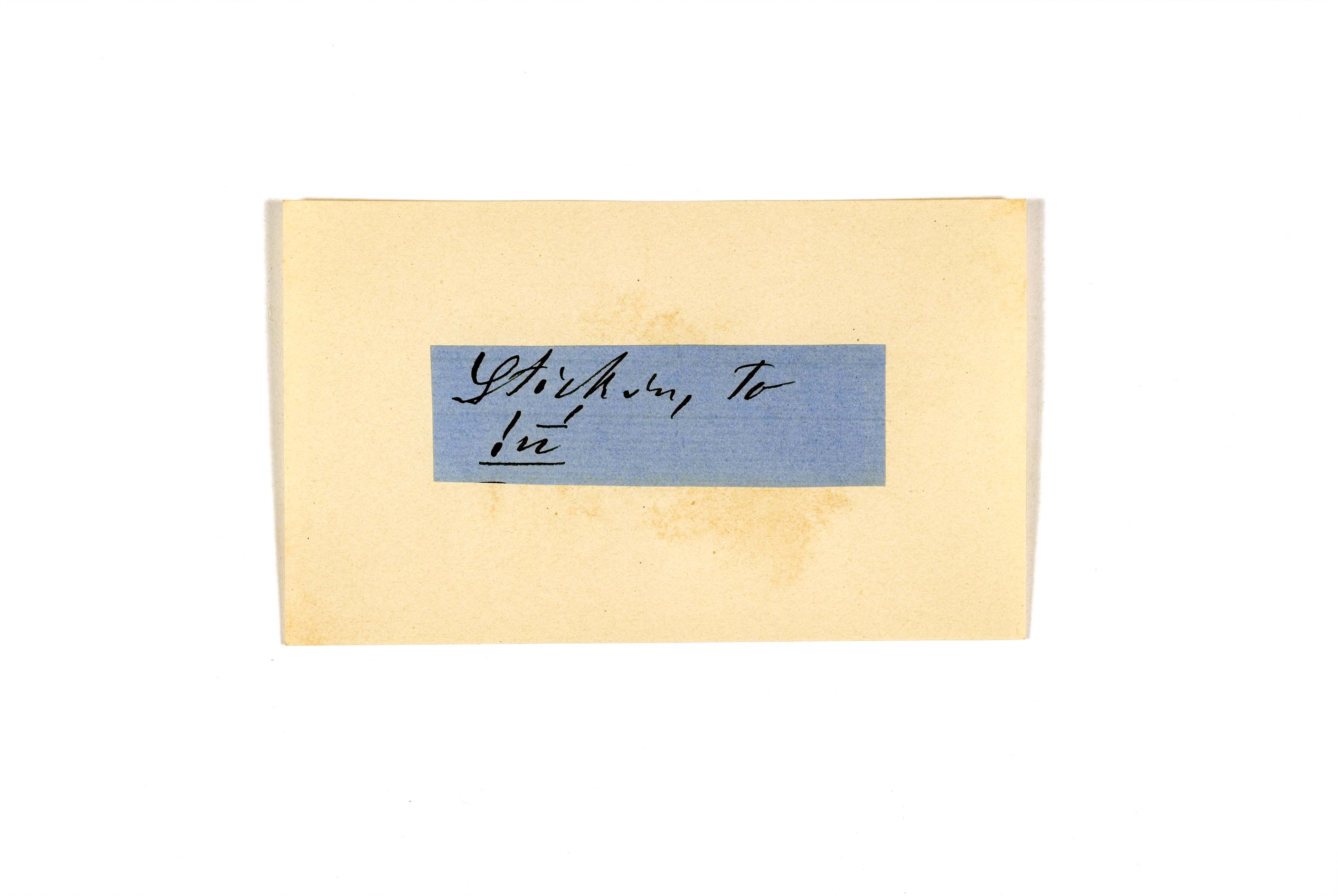 ink on blue paper glued on card