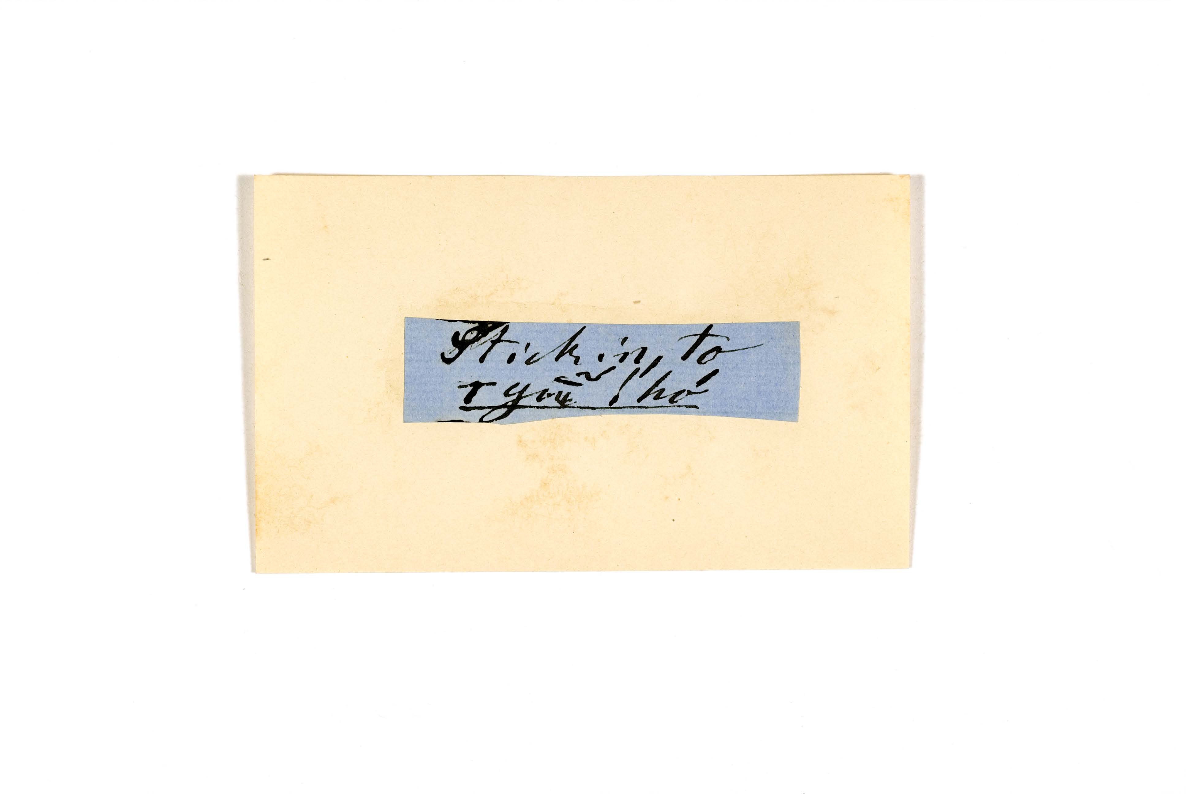 ink on blue paper glued on card