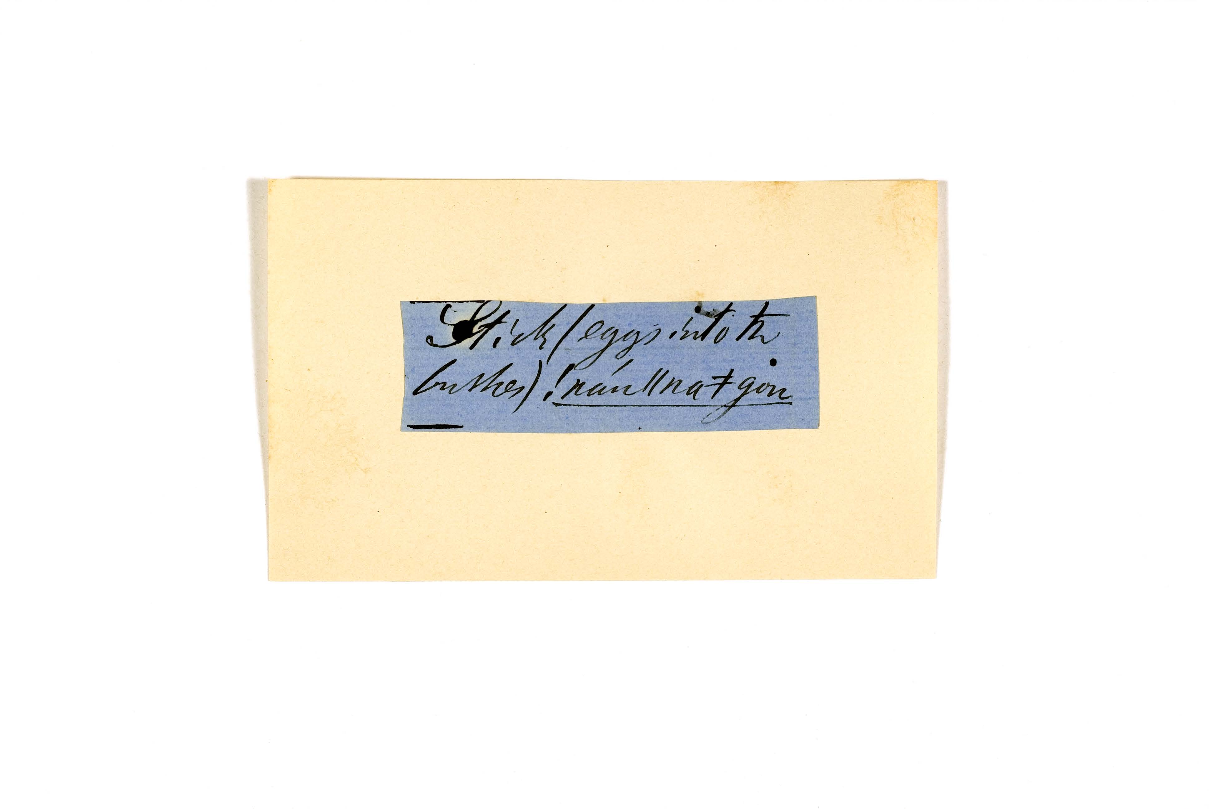 ink on blue paper glued on card