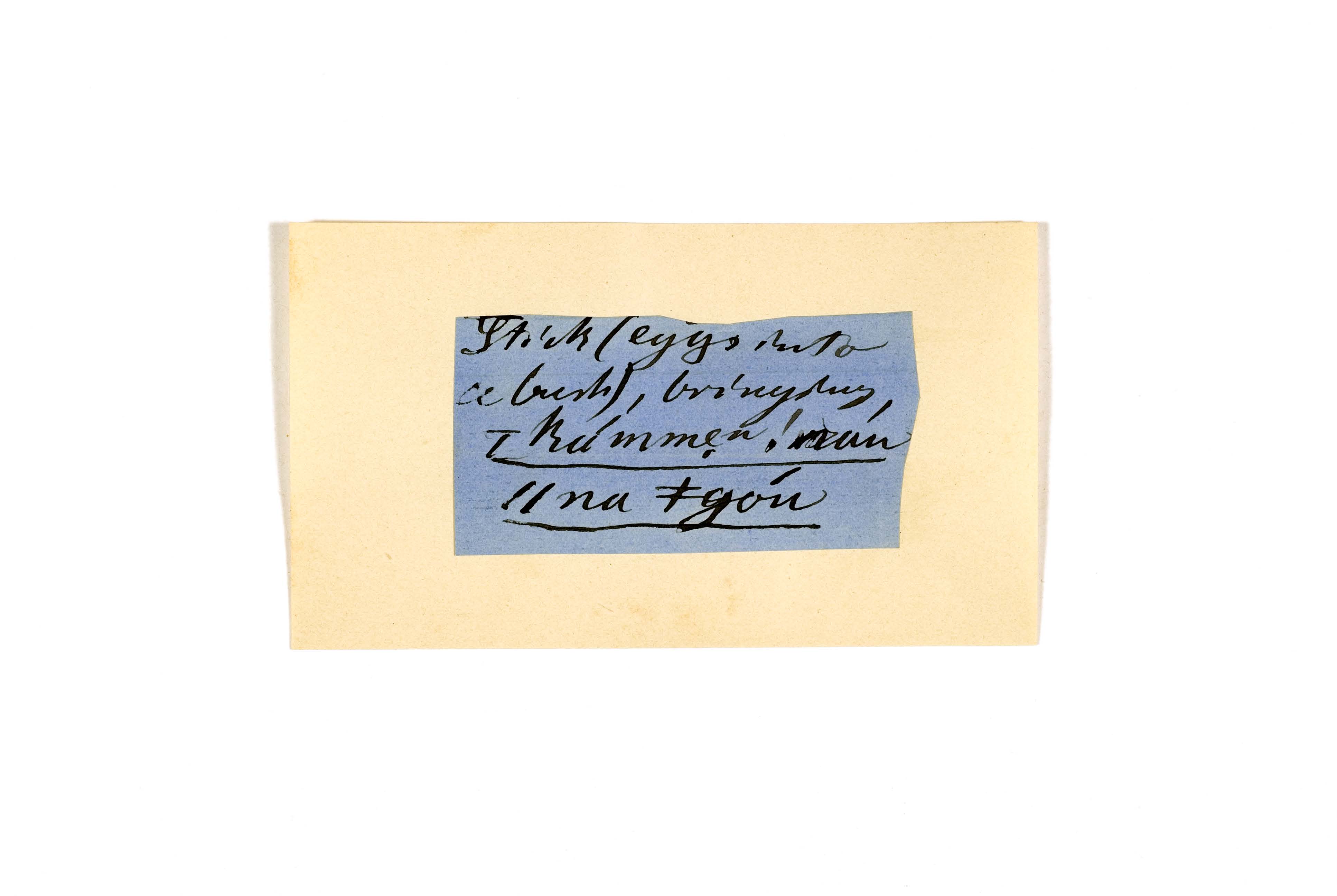 ink on blue paper glued on card