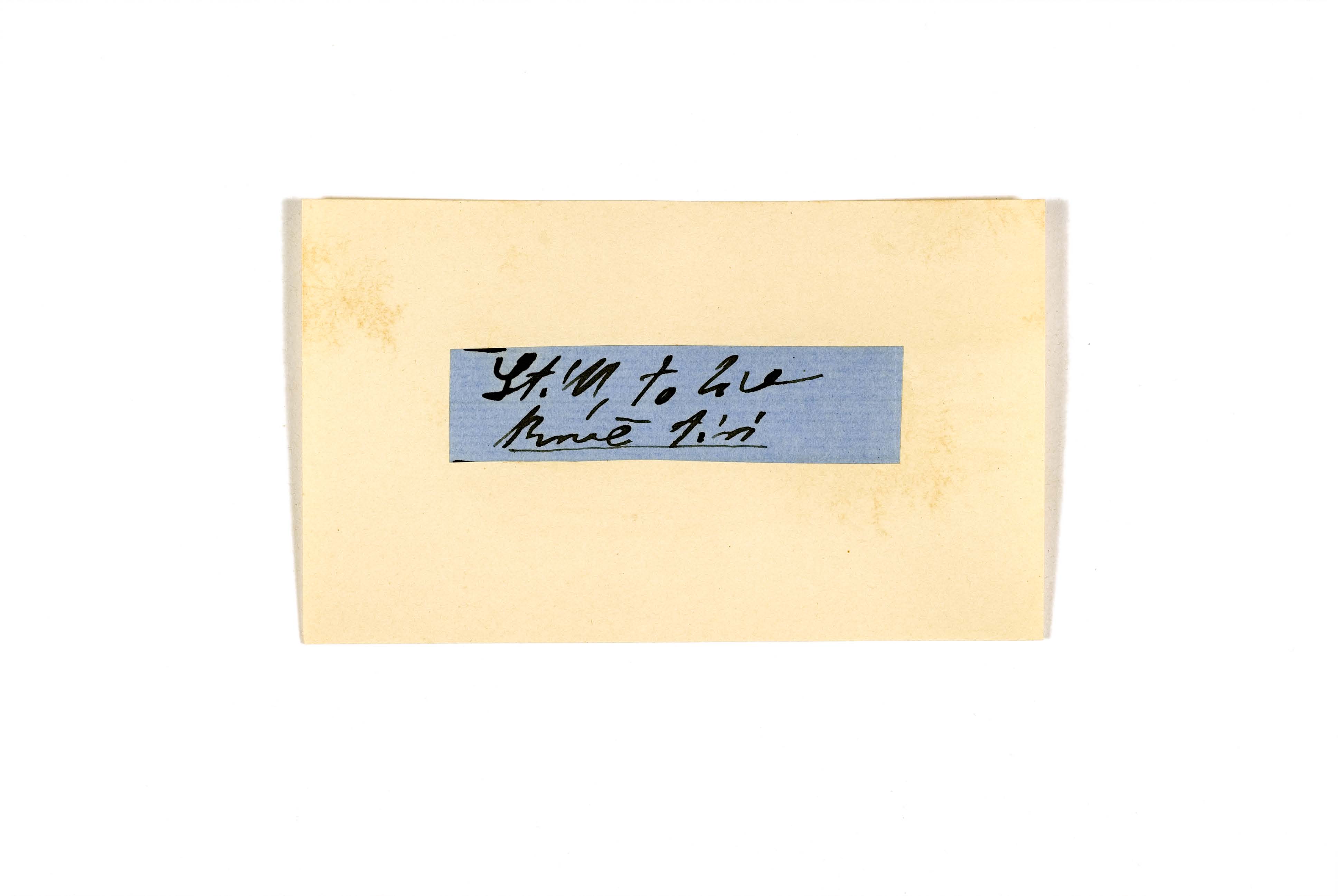 ink on blue paper glued on card