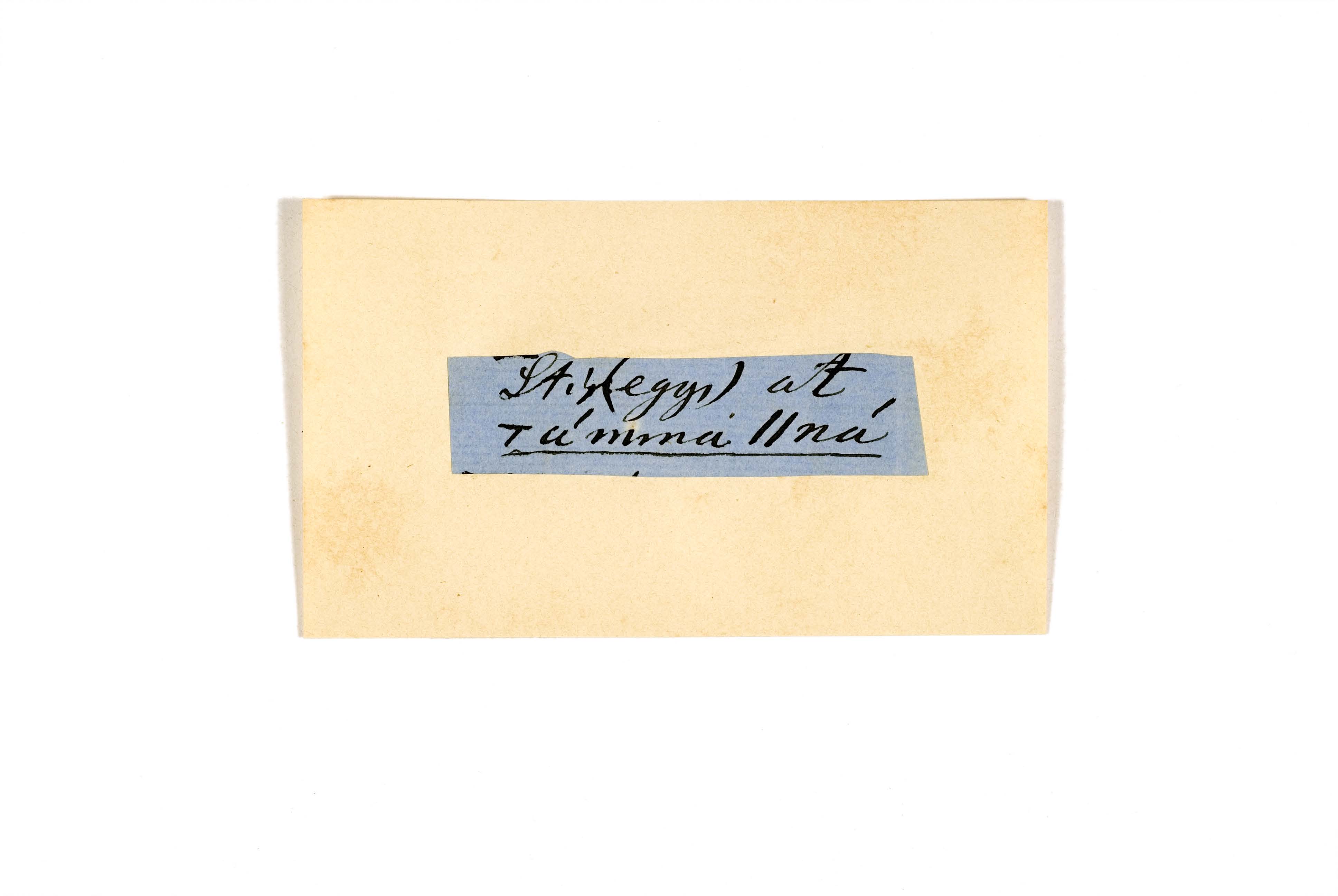 ink on blue paper glued on card
