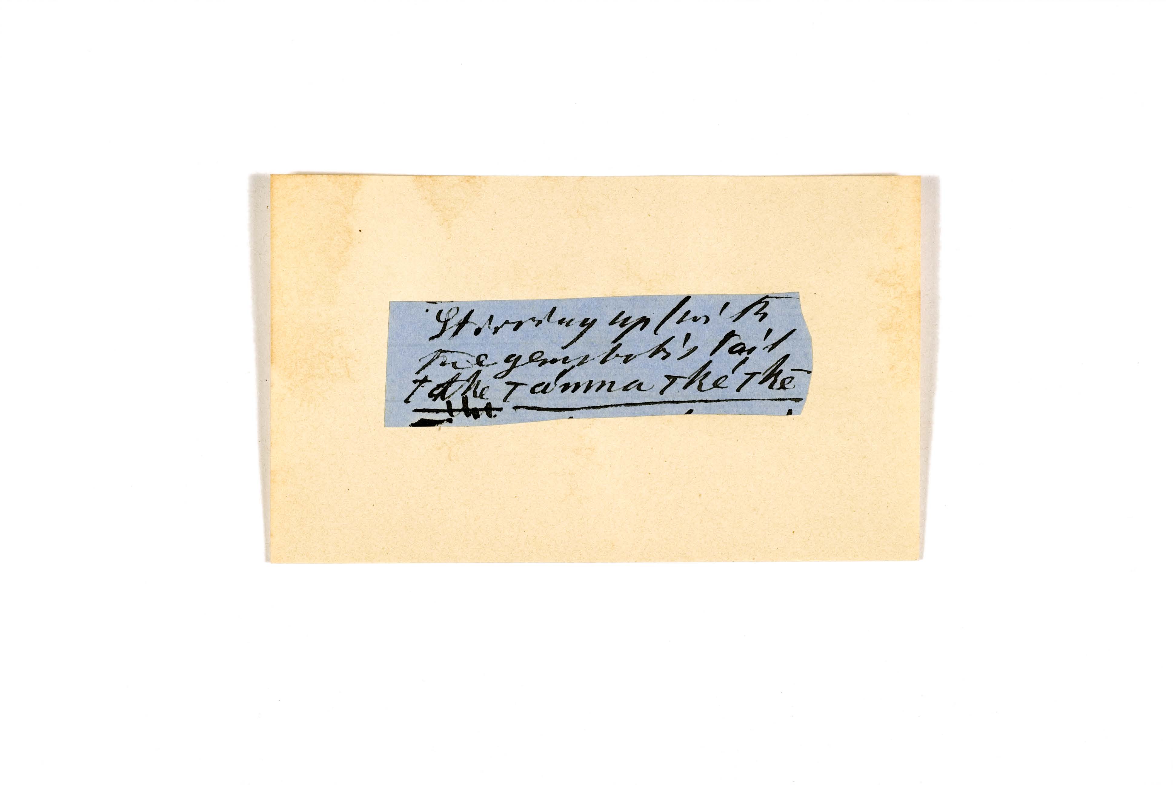 ink on blue paper glued on card